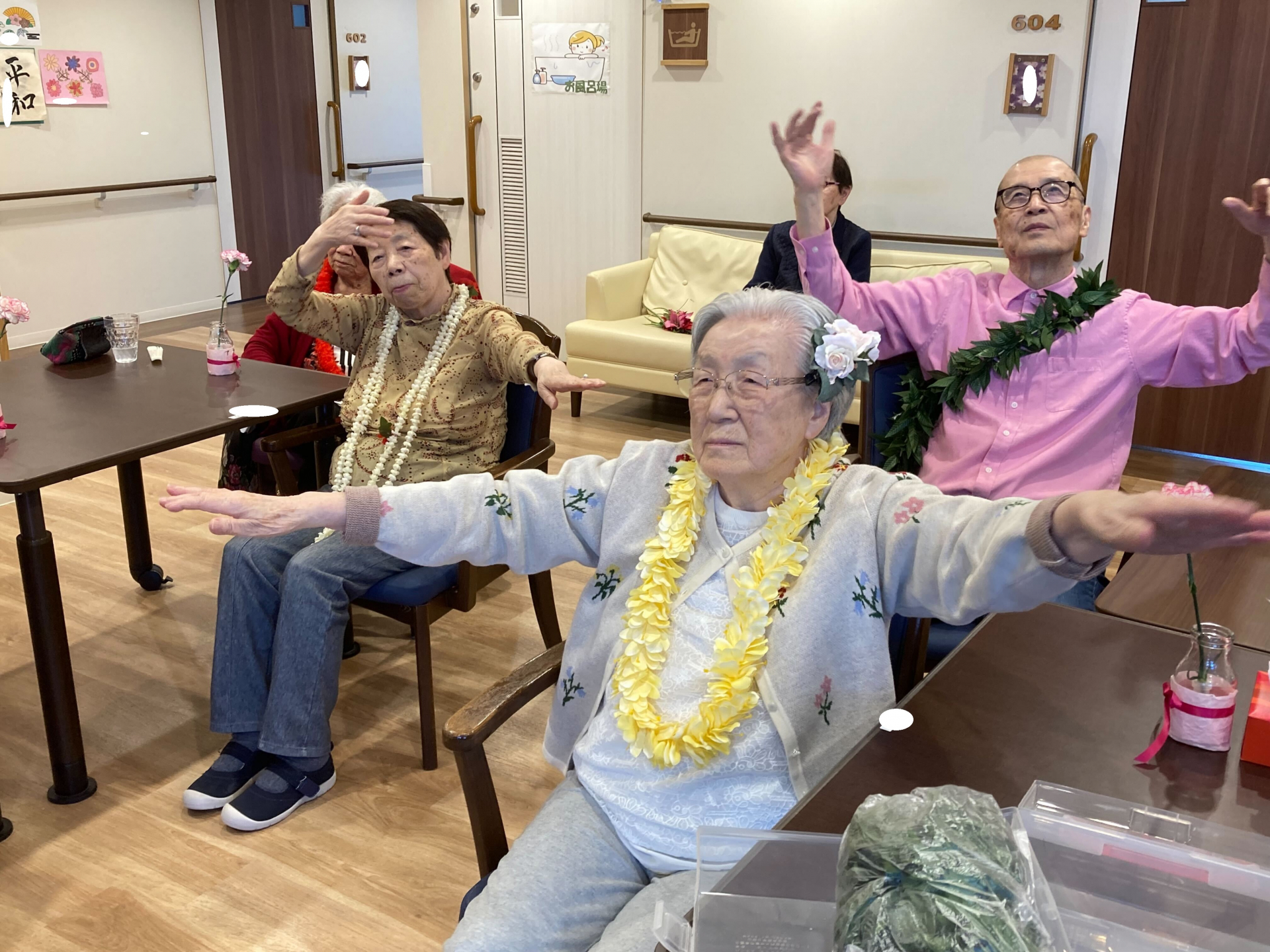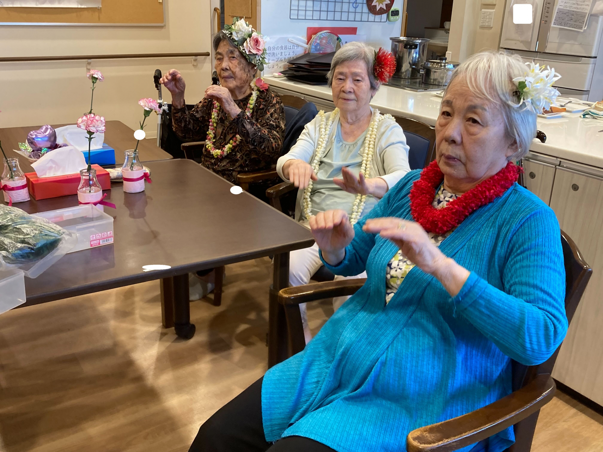 フラダンスで運動良いですね💛 やはり、お花の飾りをつけると華やかさがあって
