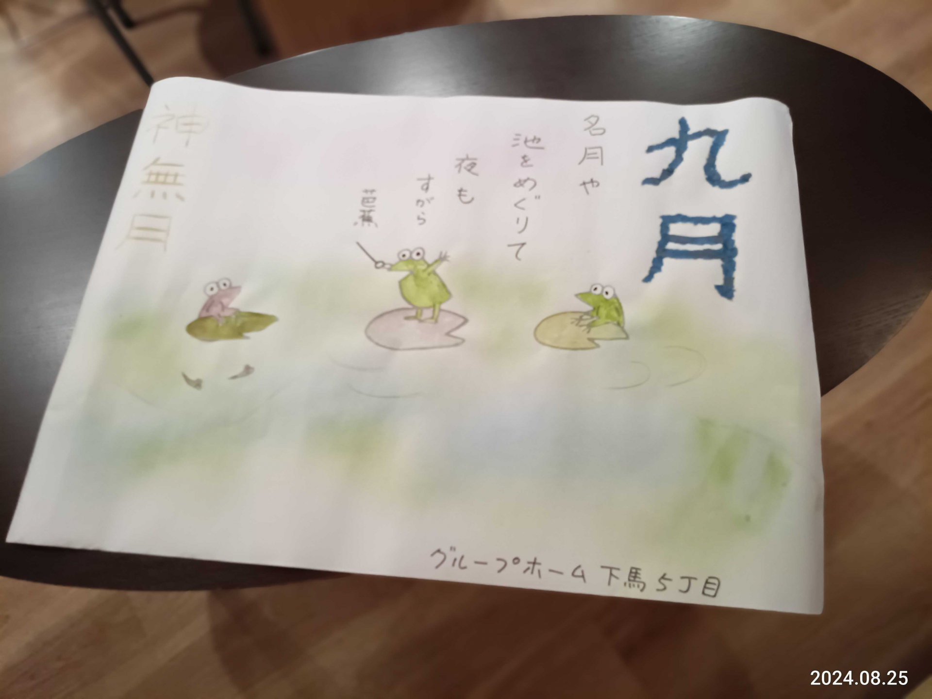 2024.09.02 活動報告 9月のカレンダー(*^-^*) Tweet シェアする 早いもので、もう9月です! 先日カレンダーを皆さまで作りました(*^-^*) 9月も素晴らしい月でありますように♪ 5丁目 原 前の記事 2024.09.06 活動報告 訪問美容☆ヘアカット 次の記事 2024.09.02 活動報告 落語会(^^)/ 一覧へ戻る