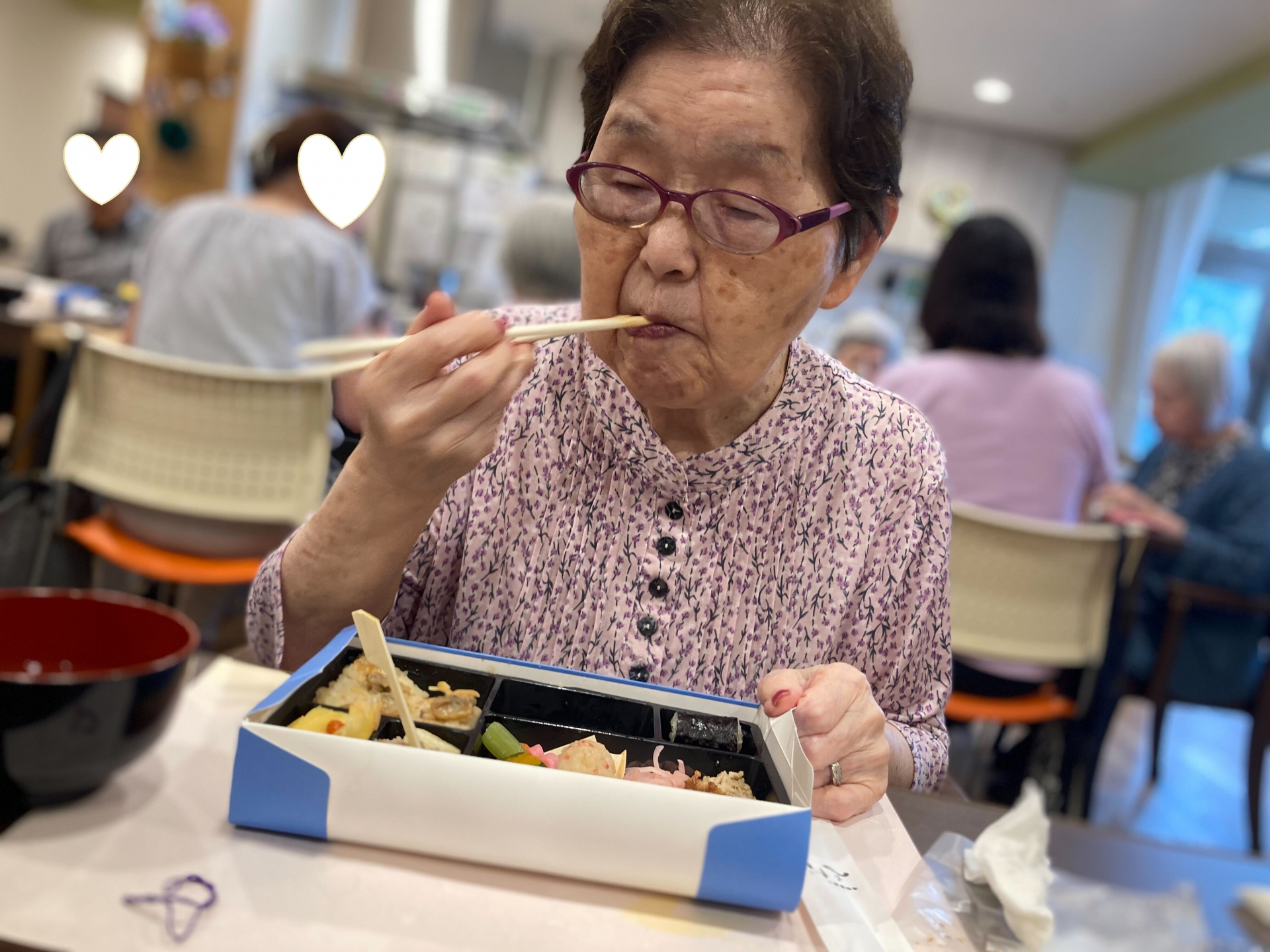 お昼はご長寿祝賀会用、豪華なお弁当です♪
