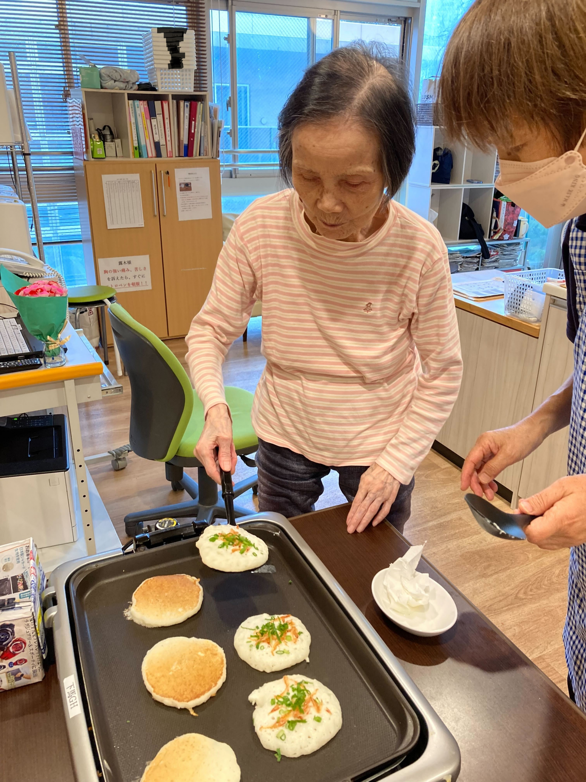 2024.10.08 活動報告 お好み焼きレク♡ Tweet シェアする 本日のおやつレクお好み焼きを作る際に手伝って頂きました😍 トッピングはお好みで。「モチモチで美味しーいい😋」いただきました。 5丁目 タパ 前の記事 2024.10.13 活動報告 今月☆ある日のおやつ 次の記事 2024.09.30 活動報告 家事☆色々② 一覧へ戻る