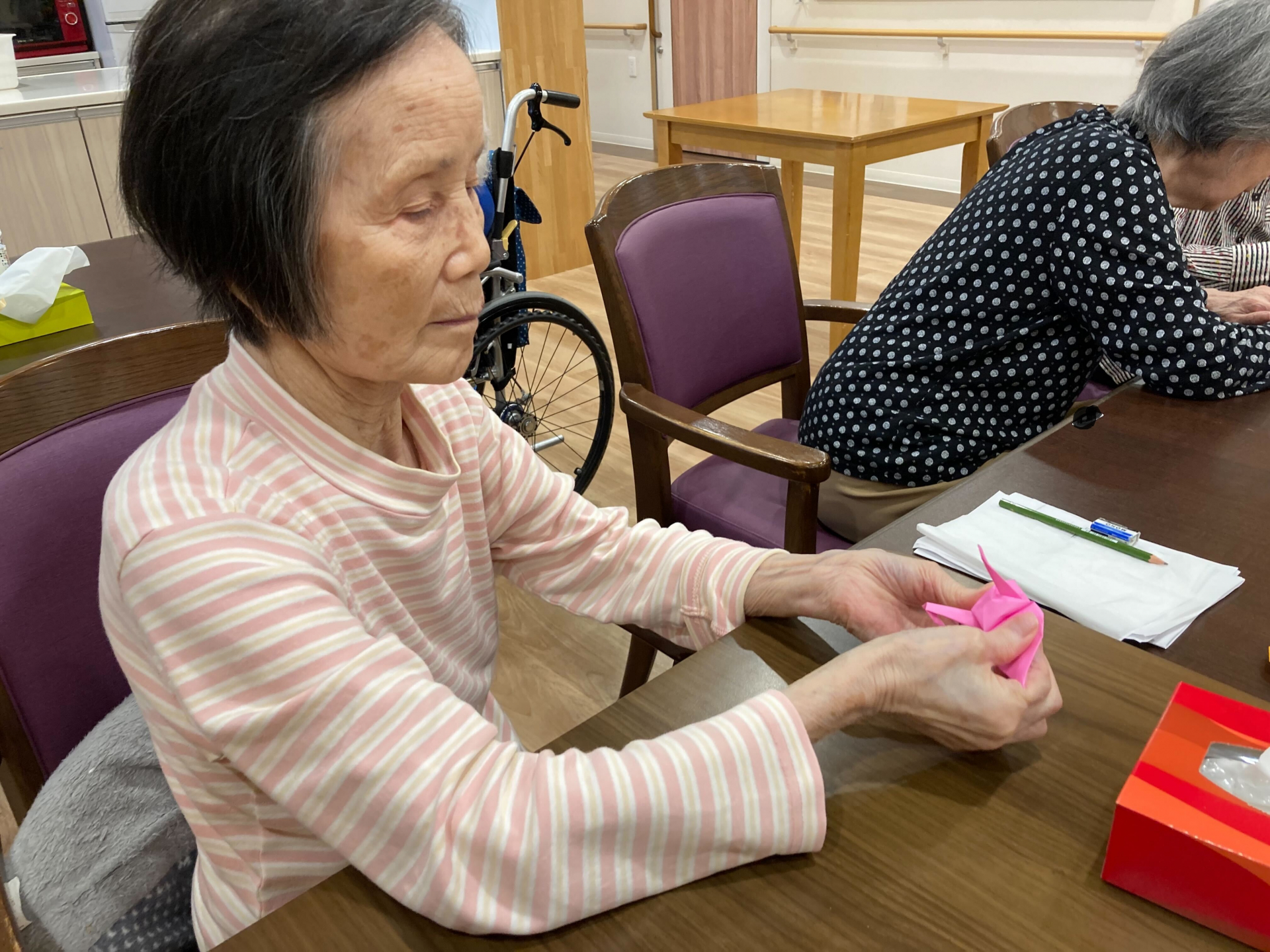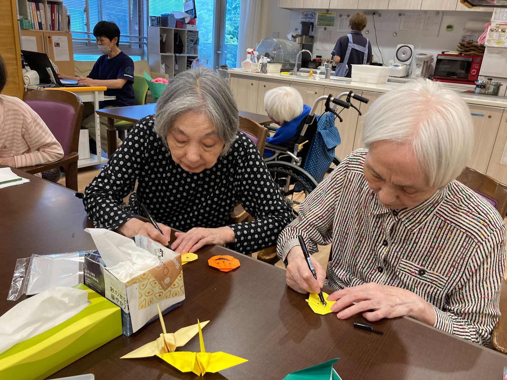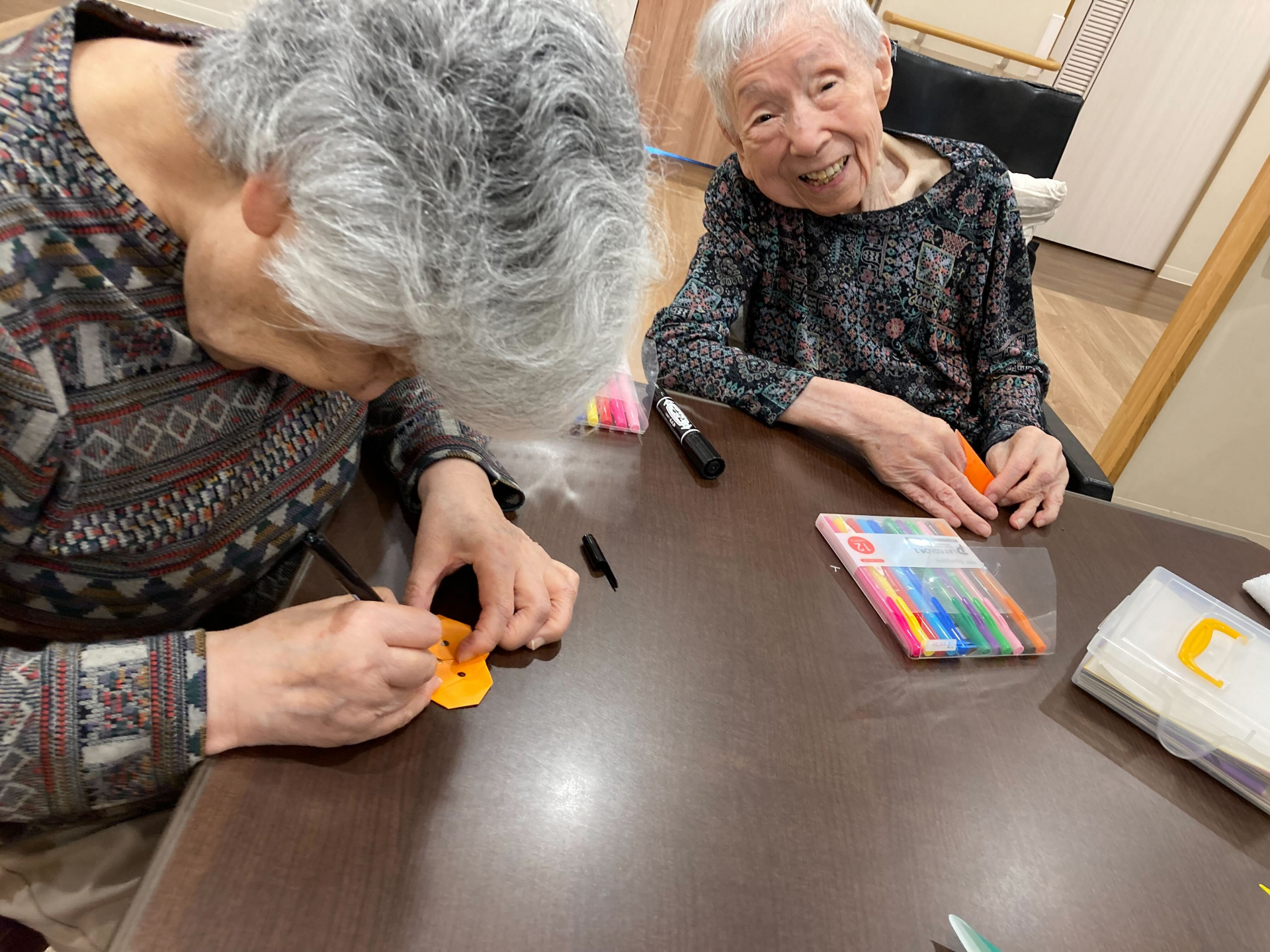 2024.10.18 活動報告 **折り紙レク Tweet シェアする もうすぐハロウィン♫ 皆様、折り紙でかぼちゃを折りました♡ カボチャ完成されました。☺ 5丁目 タパ 前の記事 2024.10.19 活動報告 脳トレ体操(^^)/ 次の記事 2024.10.17 活動報告 今日のレクチューリップ作ります。☺ 一覧へ戻る
