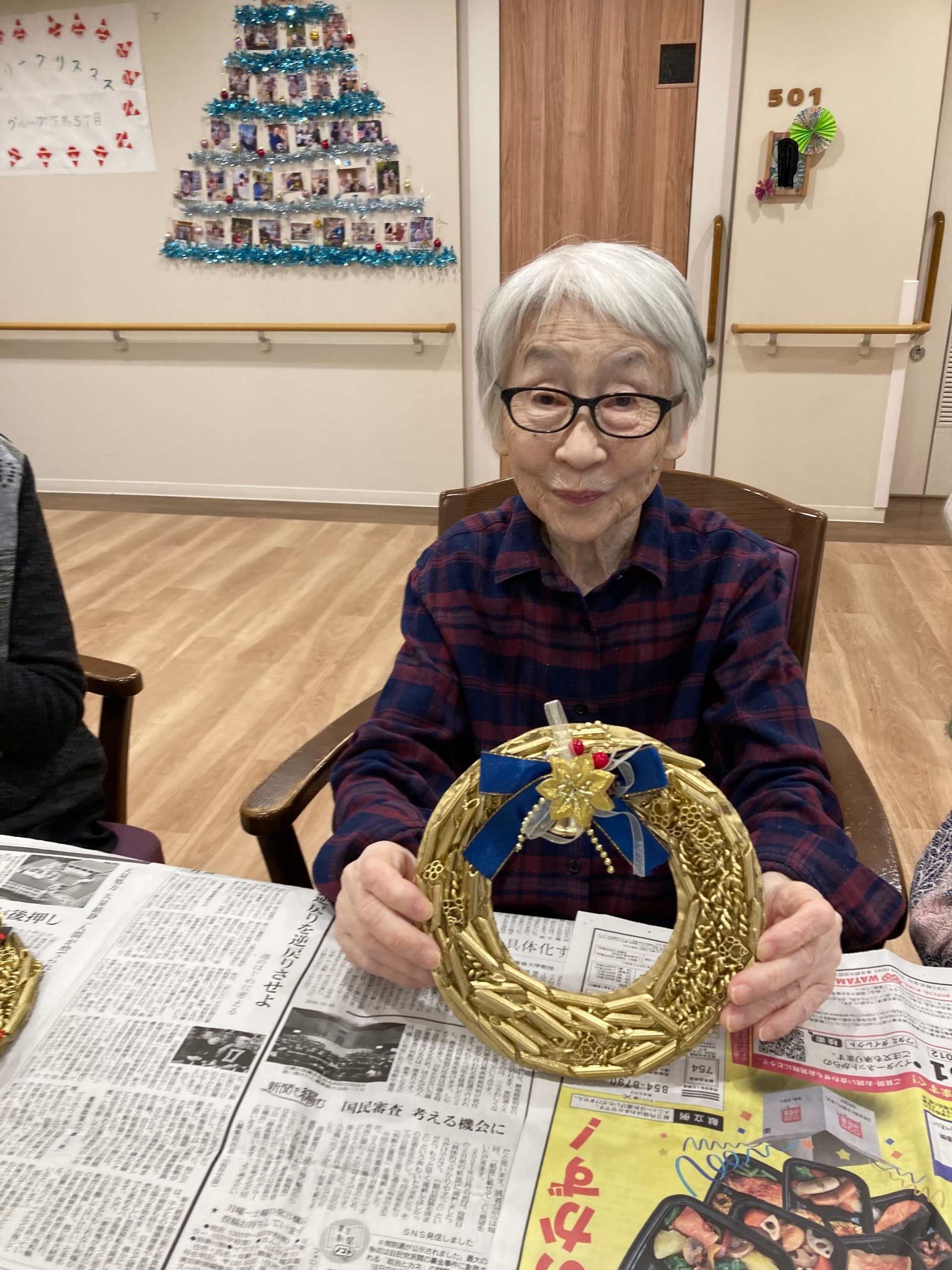 2024.11.29 活動報告 ⁂クリスマスリースレク⁂ Tweet シェアする クリスマスに向けて、マカロニリースに金色のスプレーをかけ、可愛いリースが出来上がりました♪ 皆様、本当によく頑張られましたね(*^-^*) 下馬GH5丁目 タパ 前の記事 2024.11.30 活動報告 S様☆お誕生日 次の記事 2024.11.28 活動報告 着々と(^^♪ 一覧へ戻る