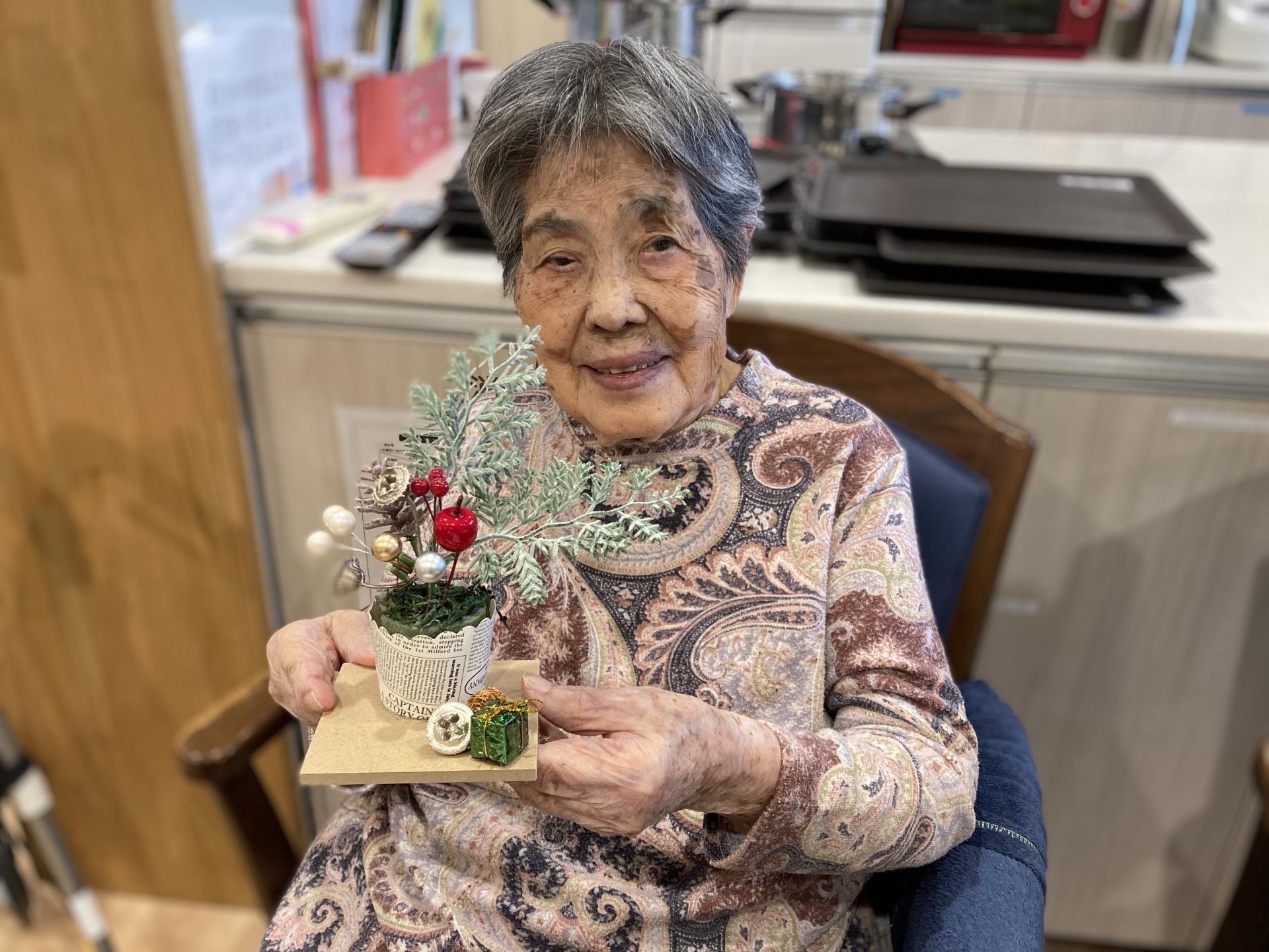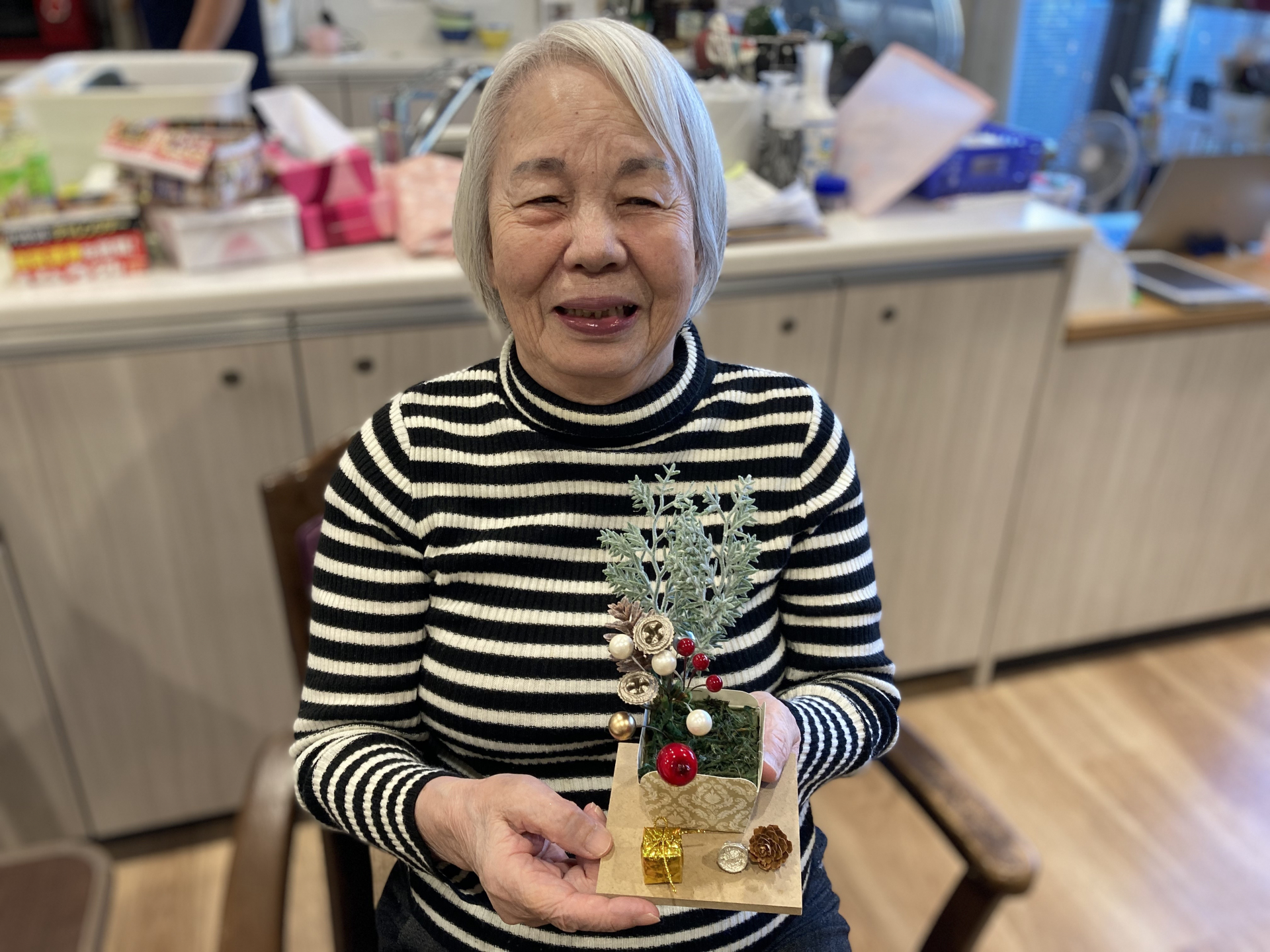 美容レクでクリスマス☆ミニツリーを作りました!!