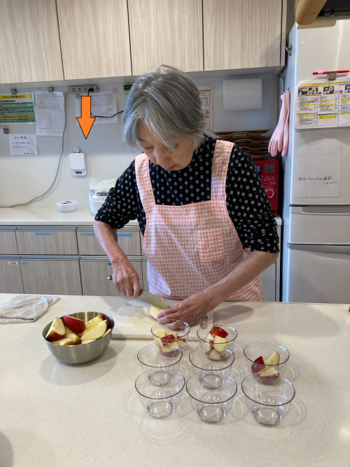 メニューはどうしても余りがちな青のりを使った竹輪の磯辺揚げとトマトのマリネ、お吸い物です。皆さんに材料を刻んで頂いたり、お吸い物や焼きそばをよそって頂きましたー(^∇^)