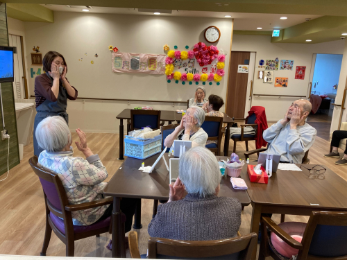 本日のおやつにニュージーランド産のリンゴを召し上がられました。皆さまと相談した結果、「リンゴは皮をむかないほうが栄養を多く摂れる」という話になり、その通りに皮をむかずにお出ししました😋リンゴを切るのは、料理が大好きなN様にお願いしました(^_-)-☆