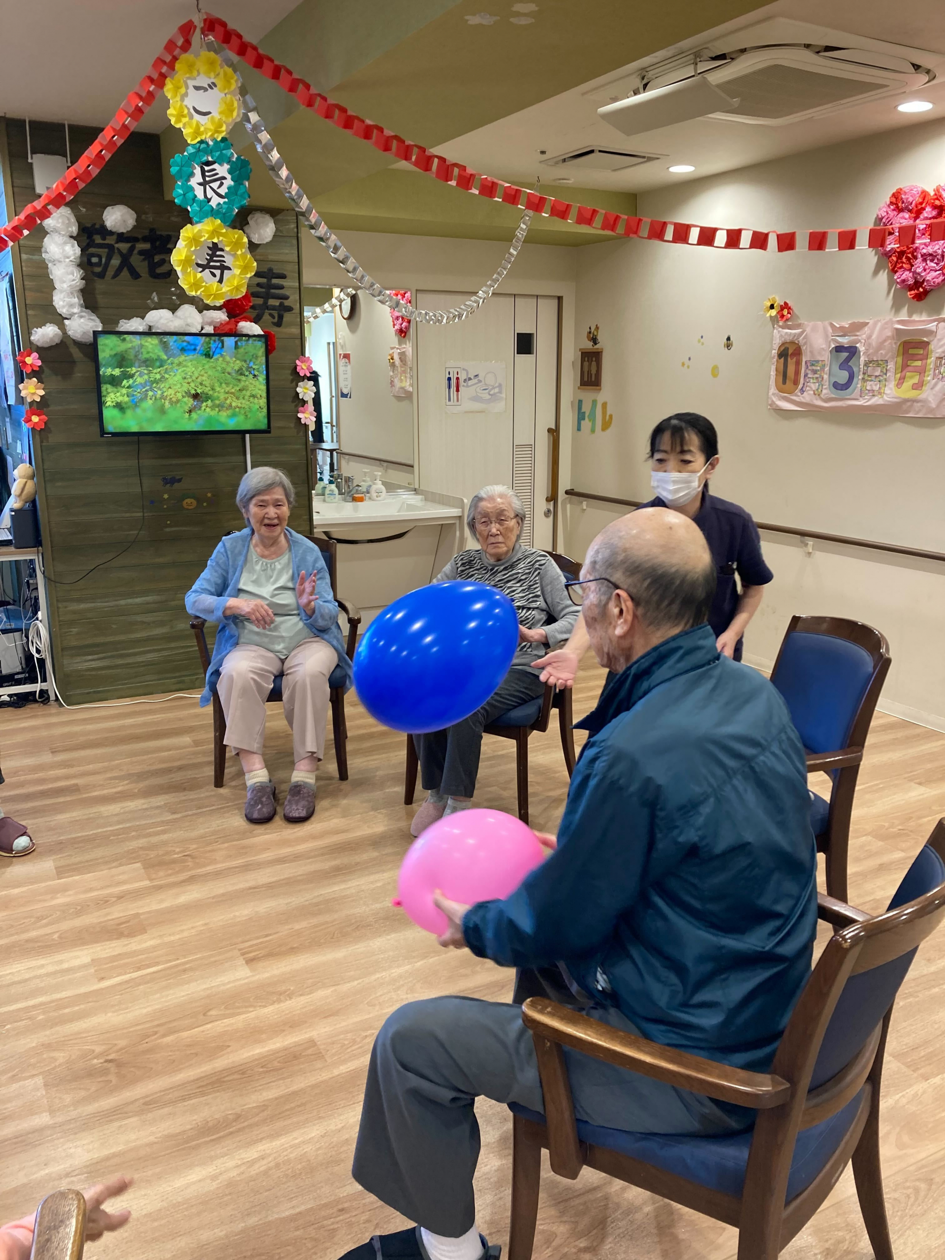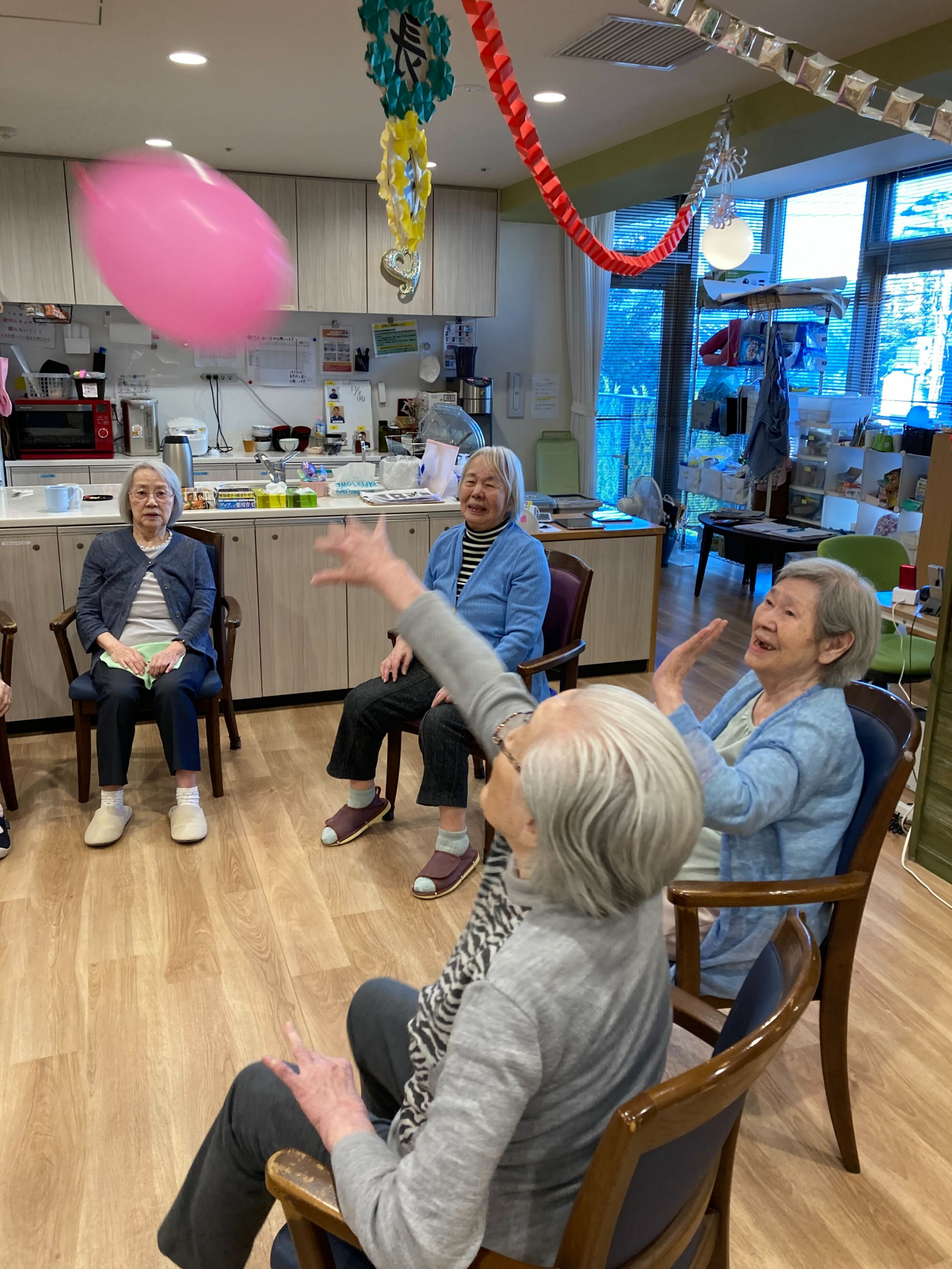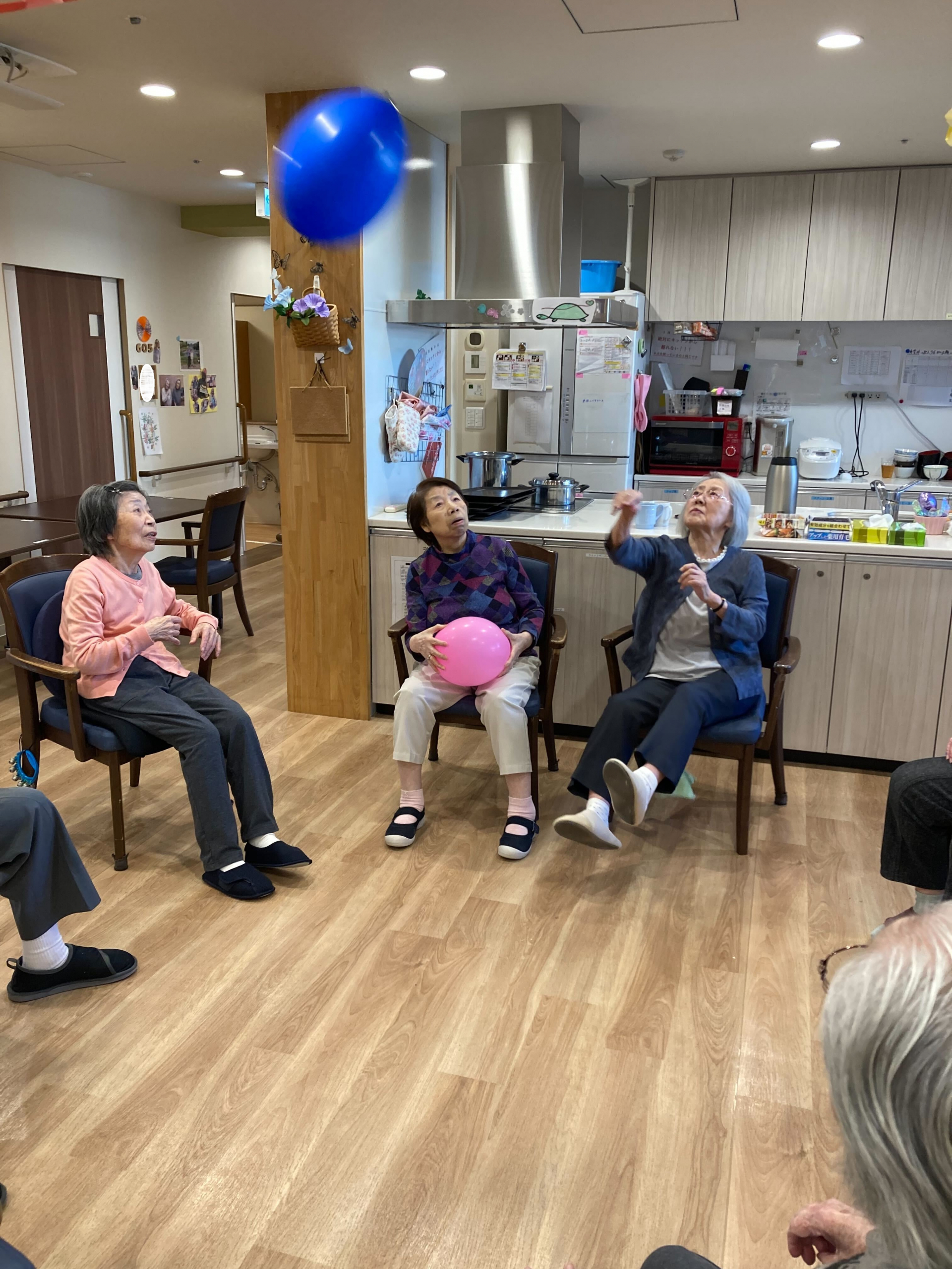風船を打ち上げたりキャッチしたりしながら、皆様笑顔で楽しんで参加されていました。腕や体を動かすことで、軽い運動にもなり、良い気分転換となりました(^^♪