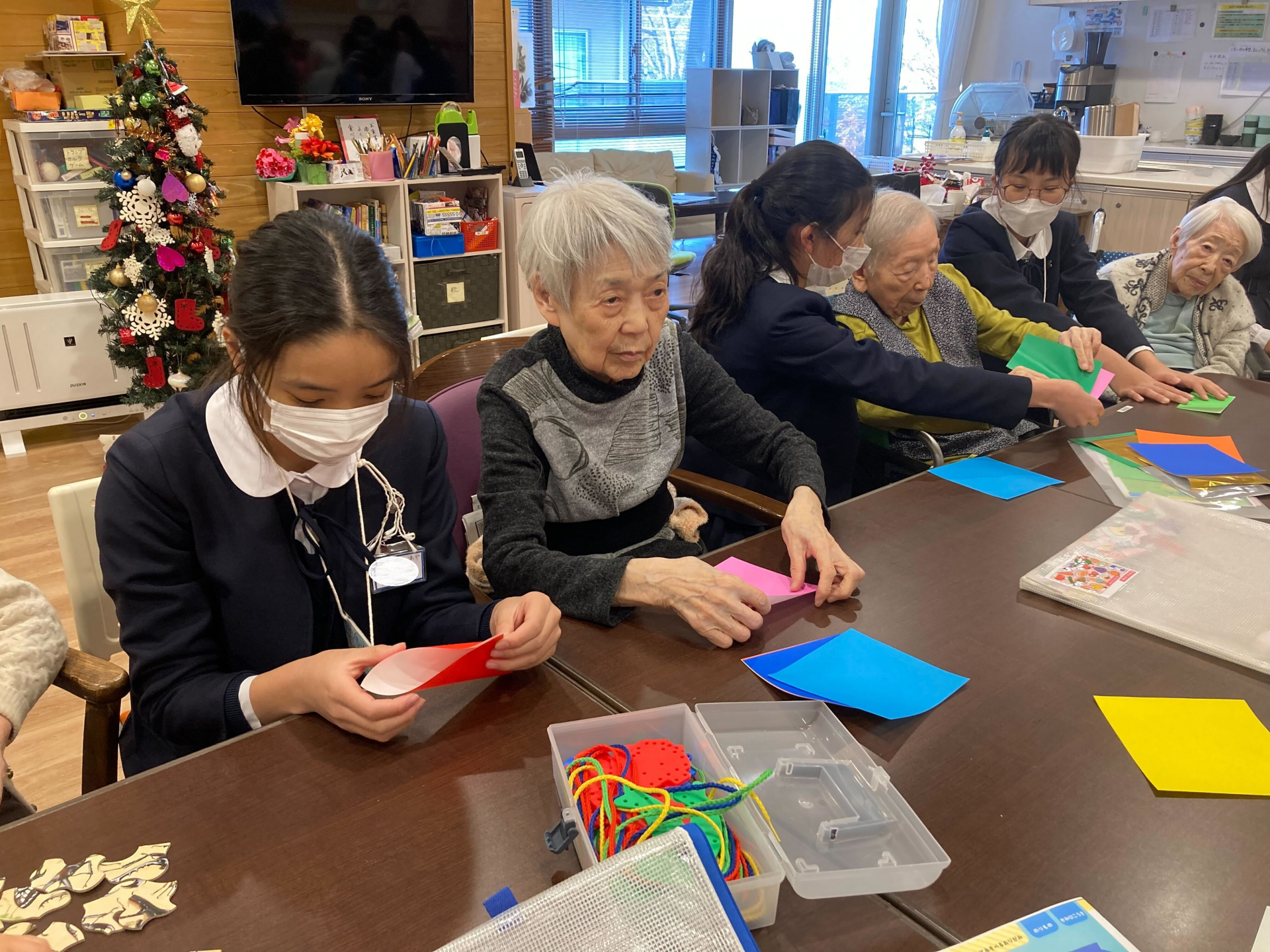 こちらからは、園児の皆さんへポーチとサンタさんの折り紙をプレゼントしました☆彡
