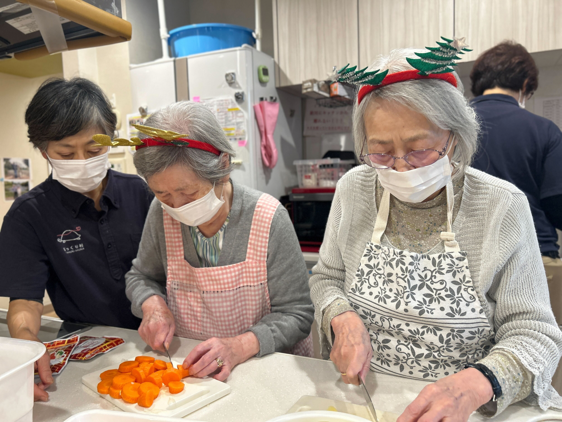 皆様で声を掛け合いながら協力して調理を進め、キッチンには良い香りが広がり、とてもおいしそうなシチューが完成しました。パンは職員による手作りで、焼きたての香ばしさも加わり、クリスマスらしい特別な昼食となりました♬