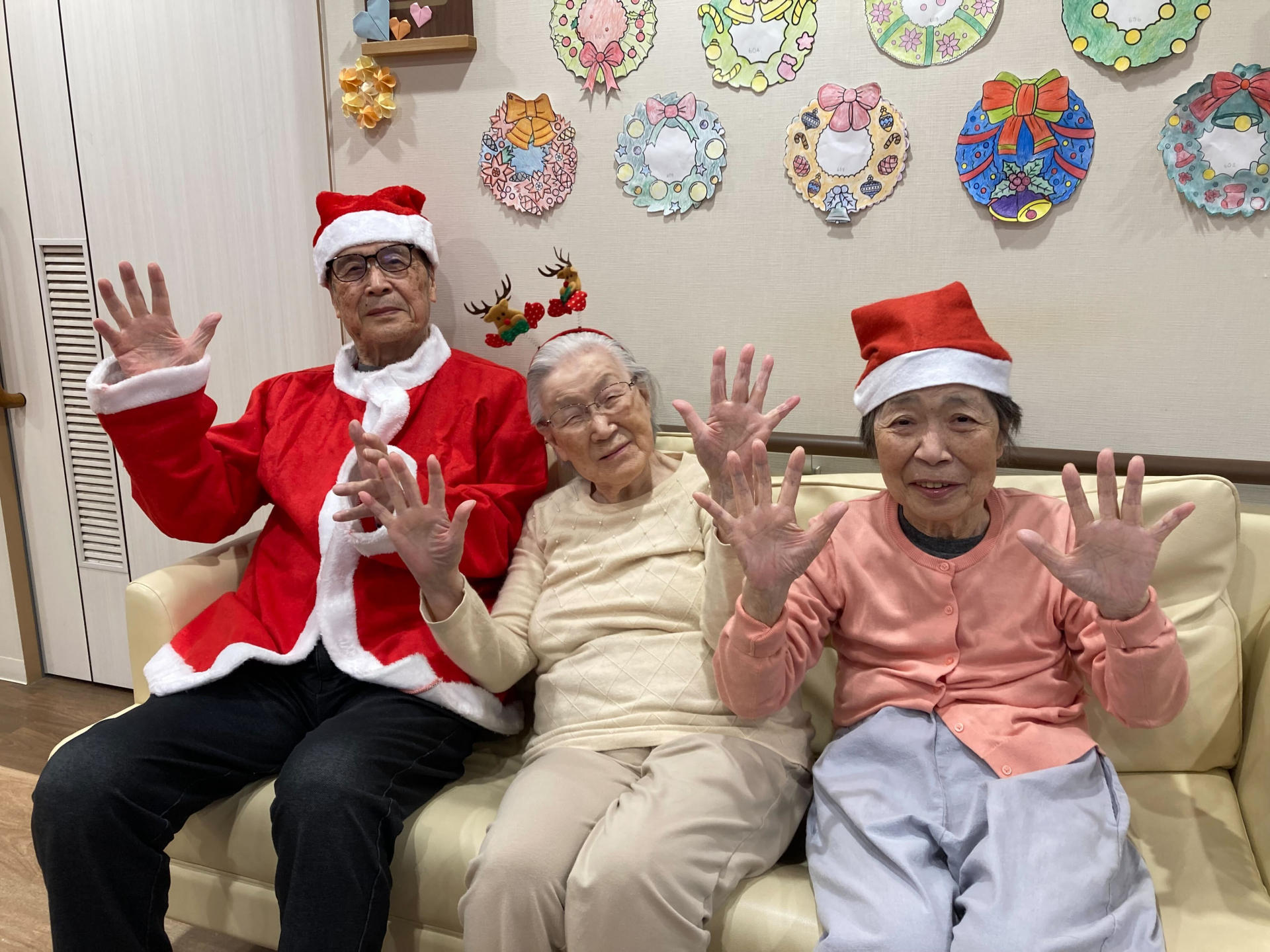12月24日、5丁目ユニットと6丁目ユニット合同でクリスマス会を開催しました!今回は、5丁目ユニットに全ご利用者様が集まり、にぎやかで温かい雰囲気の中で行われました☆彡