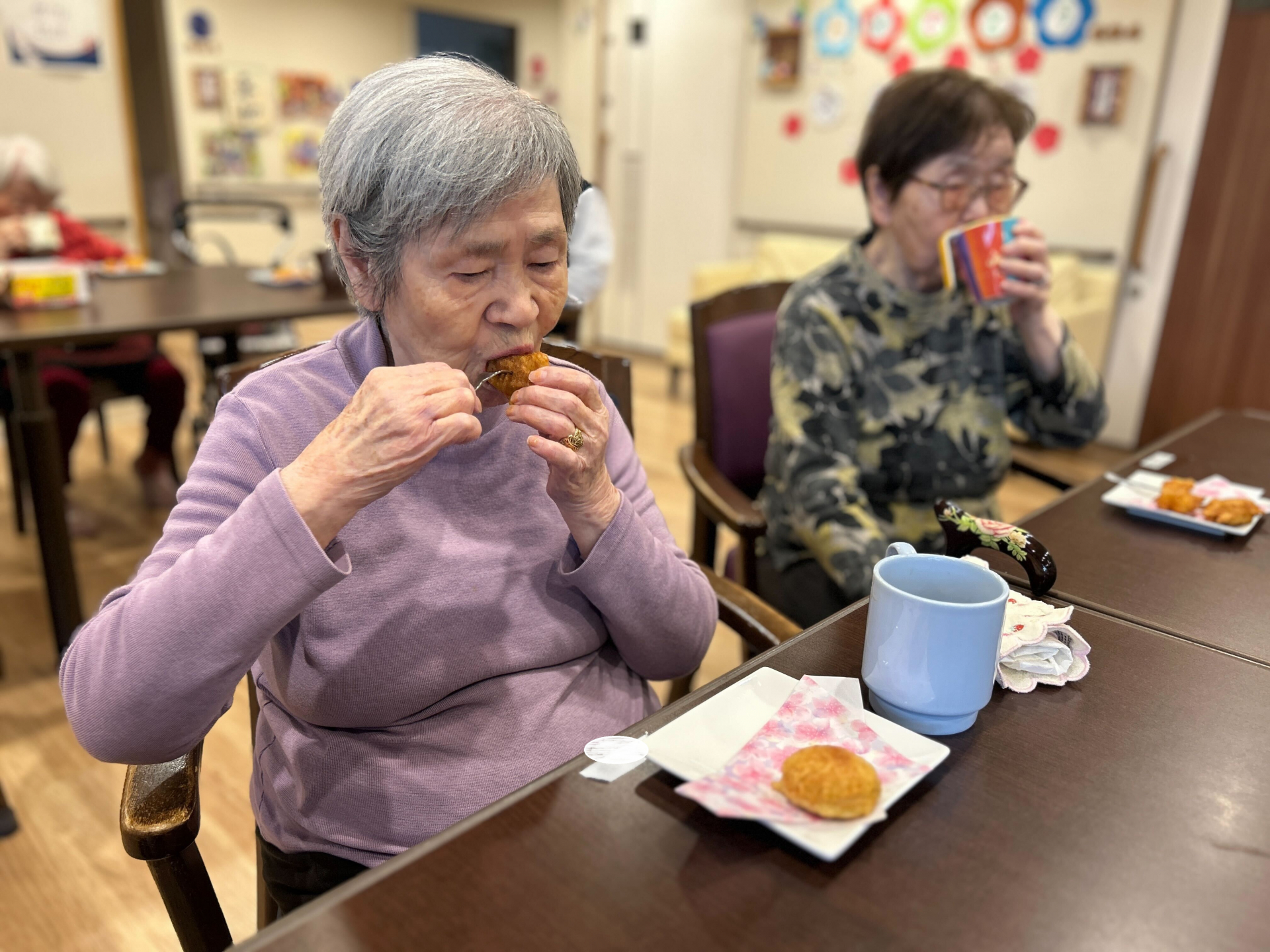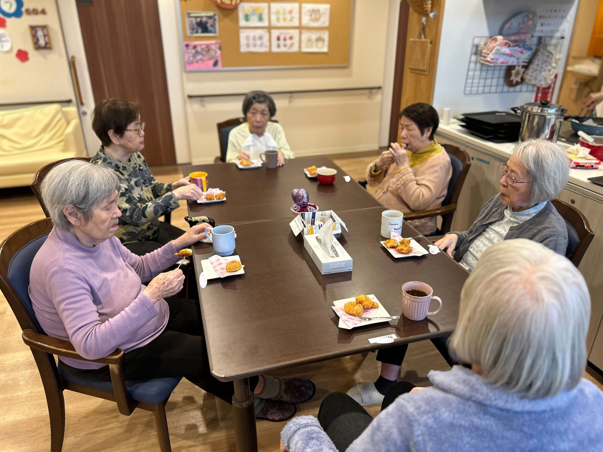 出来上がったドーナツは、おやつの時間に皆さんで美味しくいただき、手作りならではの温かさを感じるひとときとなりました(^^♪