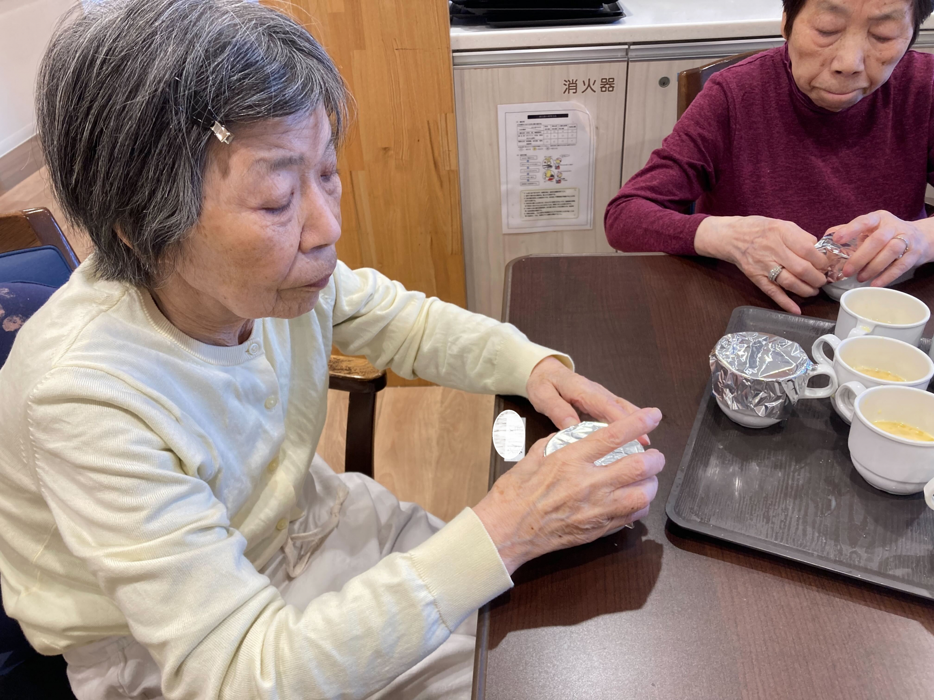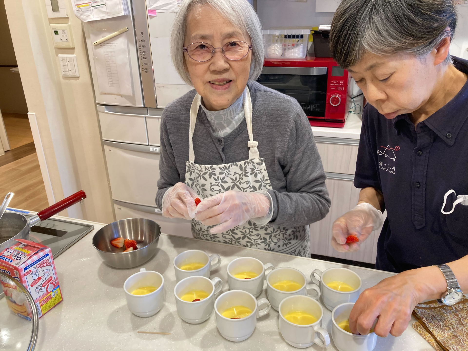 おやつの時間に、皆さんでプリンアラモード作りを行いました☆彡