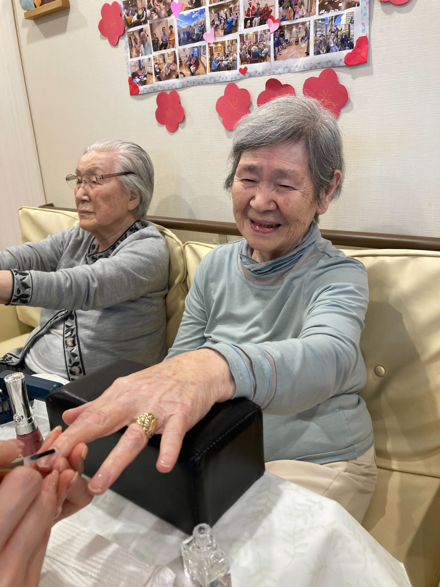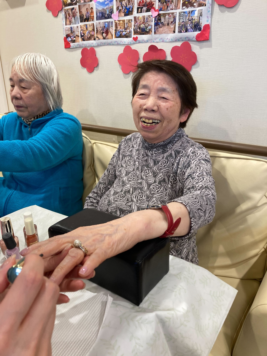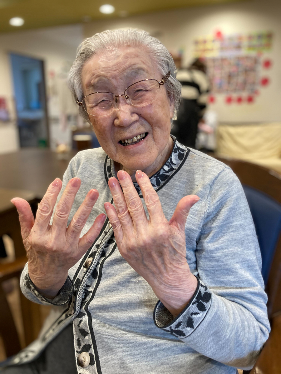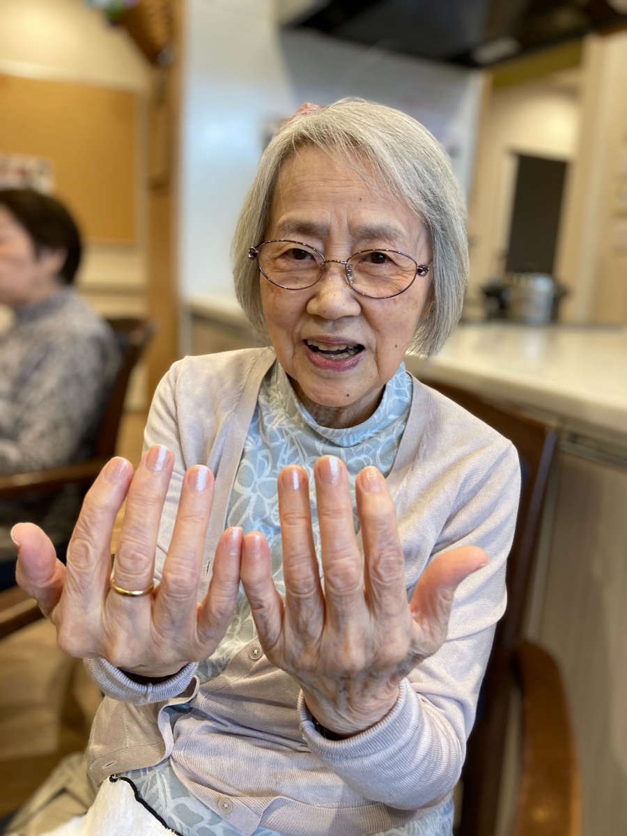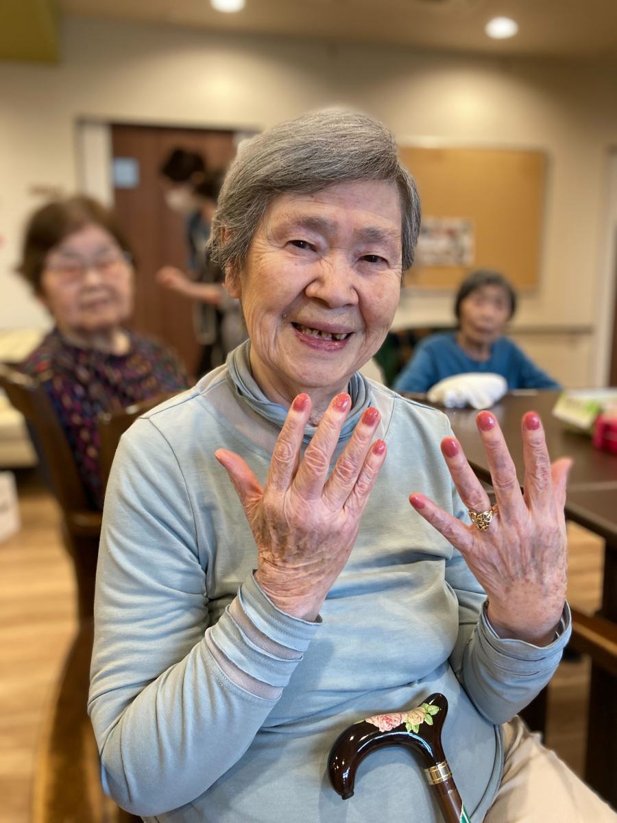 2026.04.13 活動報告 【グループホームの雰囲気】ネイル☆彡 Tweet シェアする 美容レクでネイルを行いました(*^_^*) - ネイルを行ったことで、皆さんの手元がとても華やかになり、見違えるほど綺麗になりました☆彡 優っくり村下馬 杉原 前の記事 2026.04.14 活動報告 【グループホーム雰囲気】端午の節句♬ 次の記事 2026.04.12 活動報告 【グループホームの雰囲気】日中のご様子☆彡 一覧へ戻る