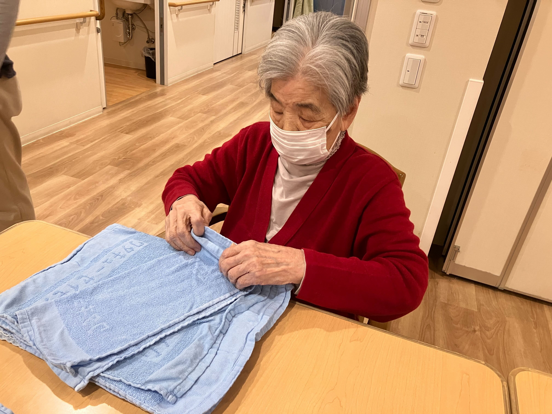 今回は、タオルたたみを手伝って下さったご利用者様の様子をご紹介したいと思います(´▽`*)