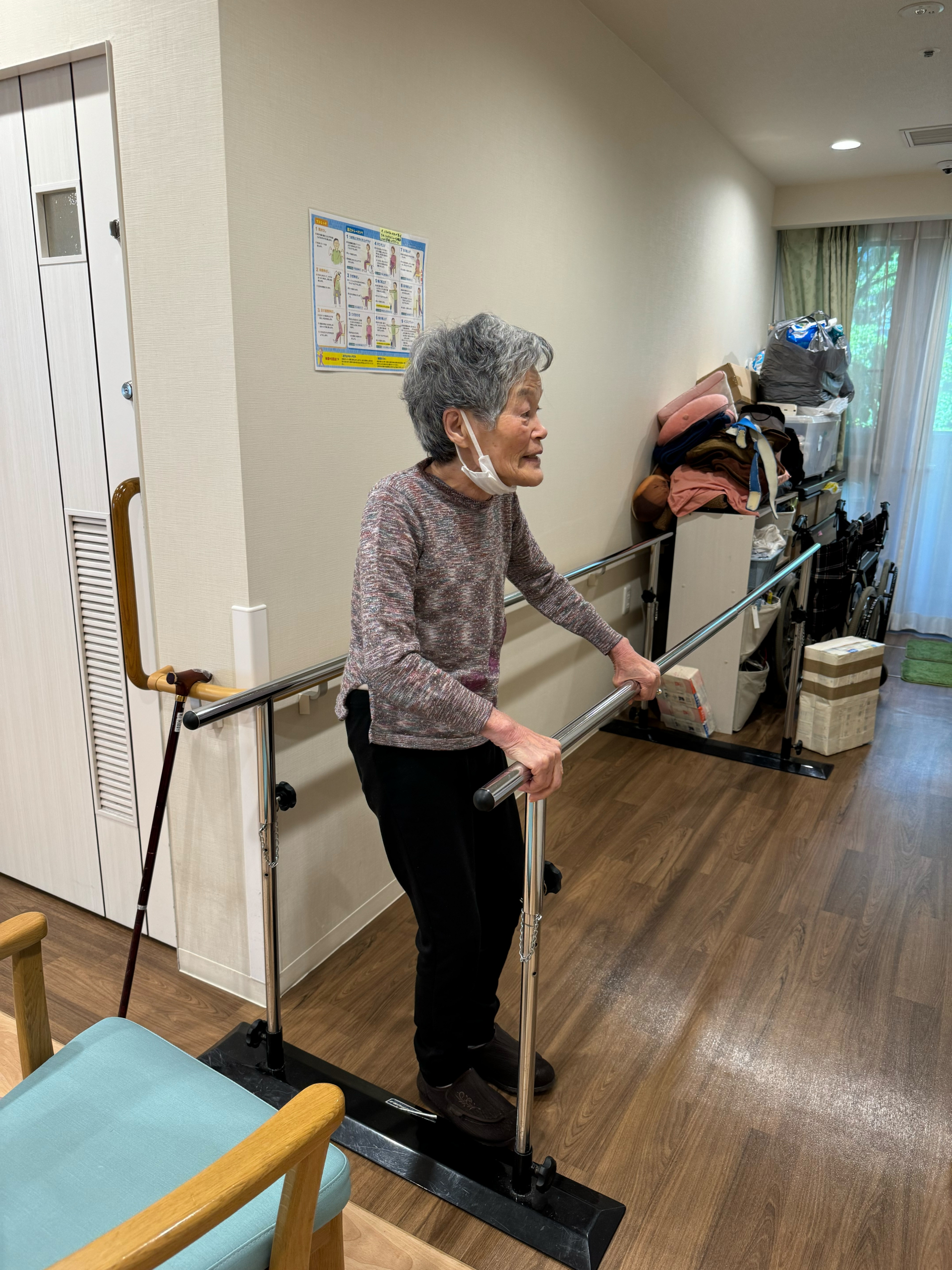 こちらは平行棒ではなくフロアを歩いていますね(`・ω・´)