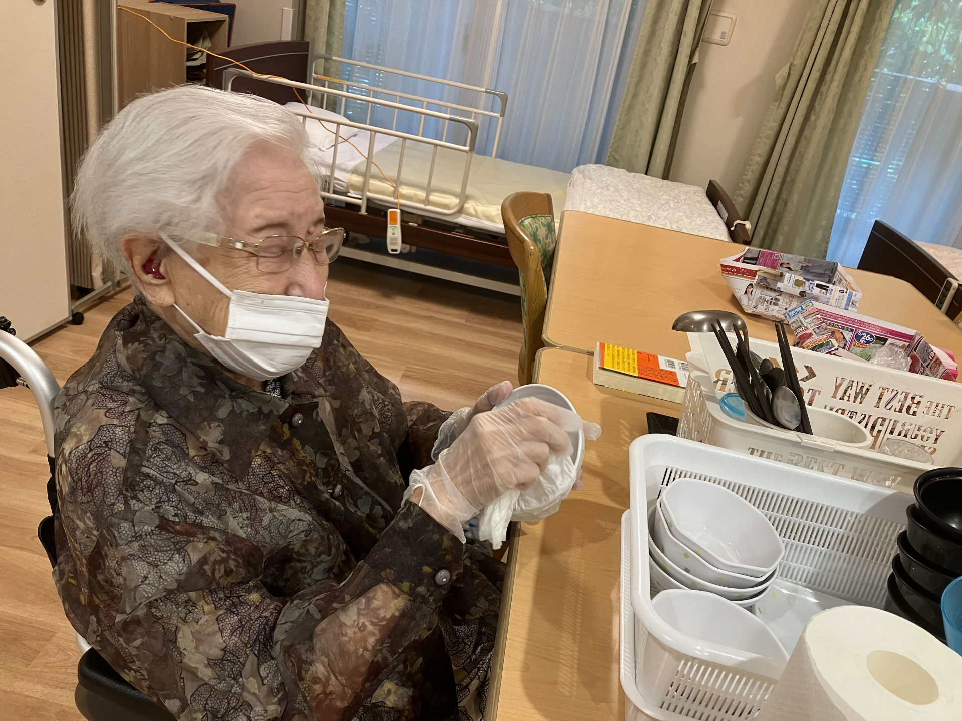 今回は、食器拭きのお手伝いをしてくださったご利用者様の様子をご紹介したいと思います(^o^)/