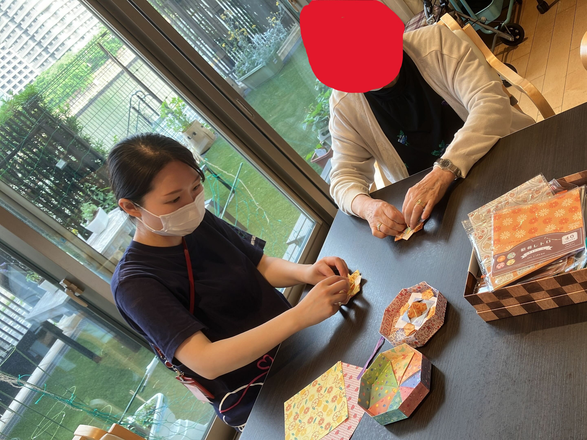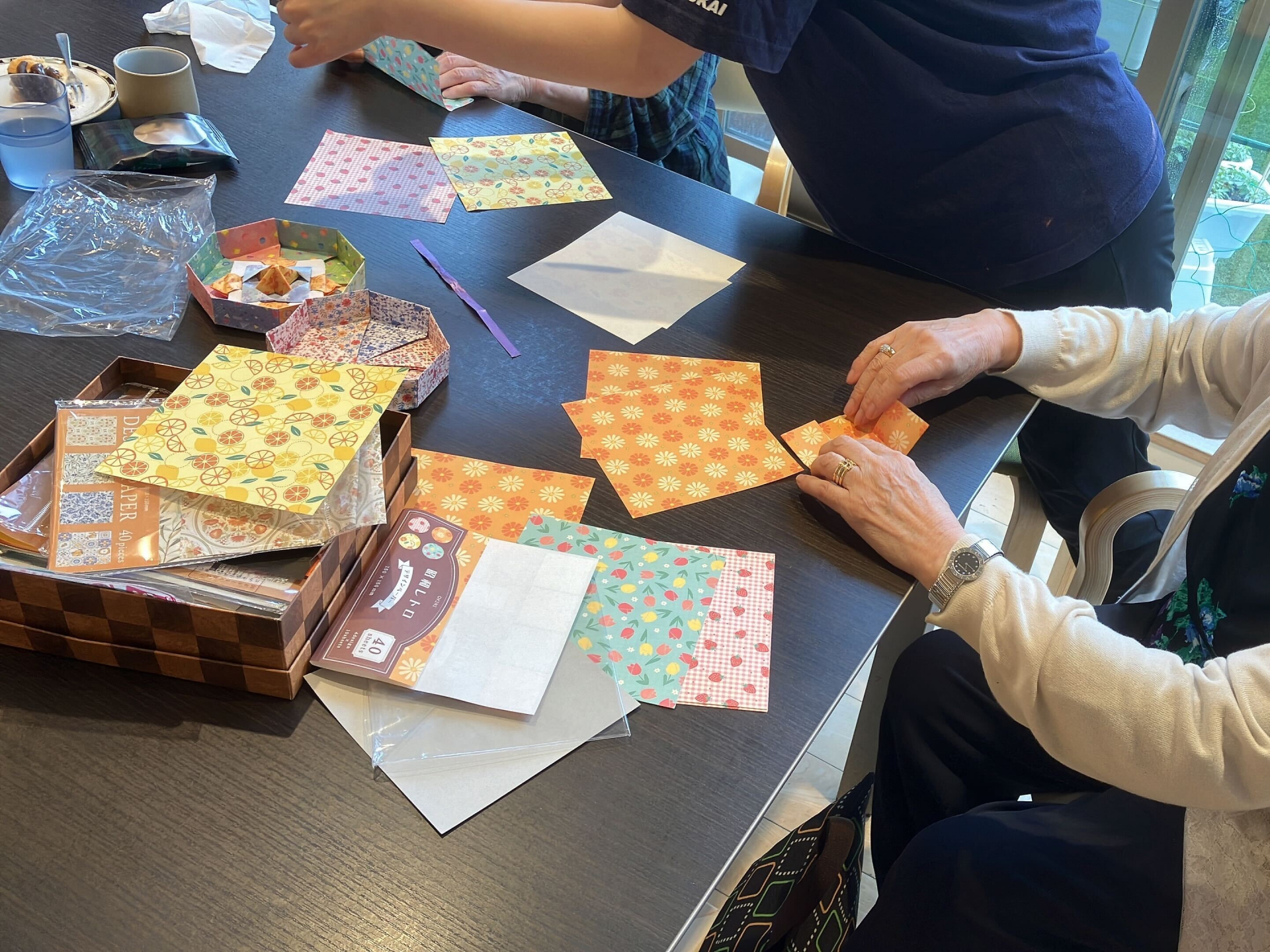 こちら、中央湊のご利用者様へお土産として下馬より持参した折り紙の箱を皆様に配っております ^^) _旦