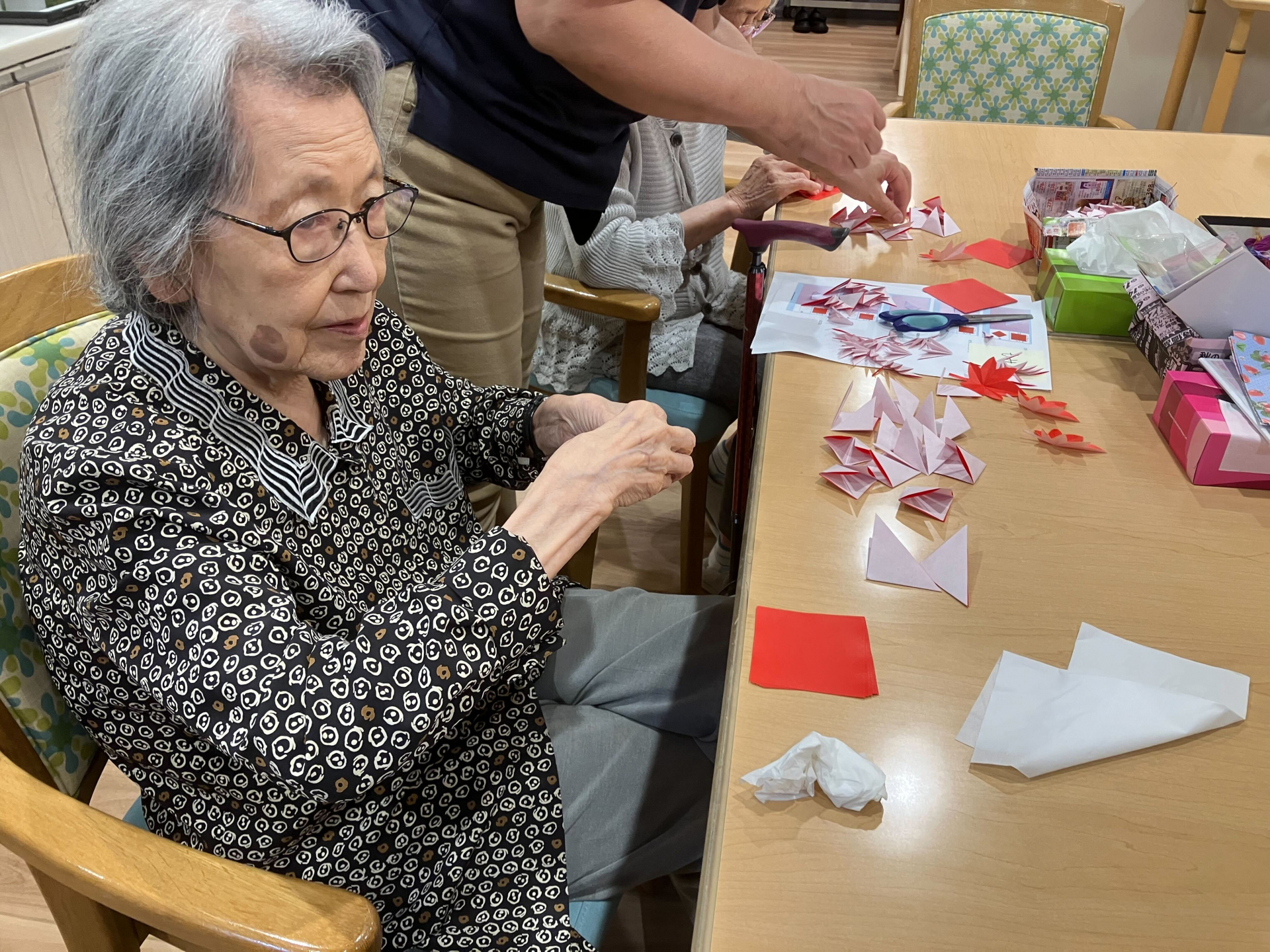 今回は、おりがみでのもみじ作りをしているご利用者様たちの様子をご紹介したいと思います(*'▽')