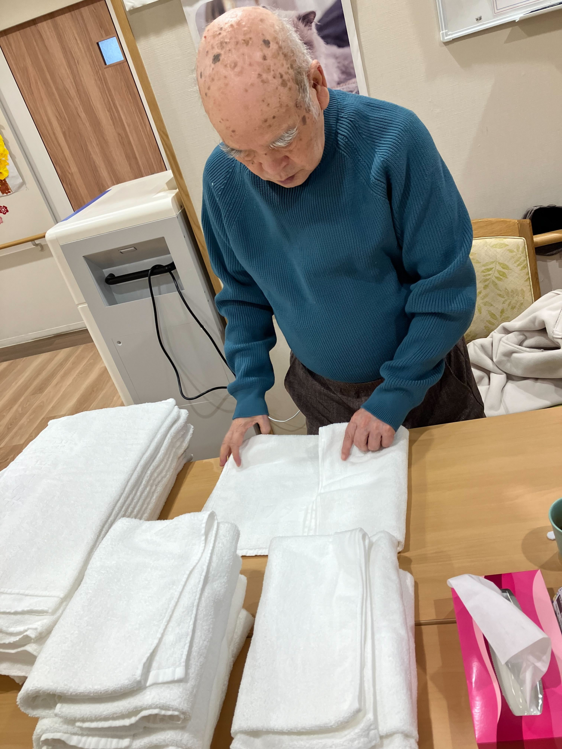 今回は、朝からタオルたたみのお手伝いをして下さったご利用者様の様子をご紹介したいと思います(#^^#)