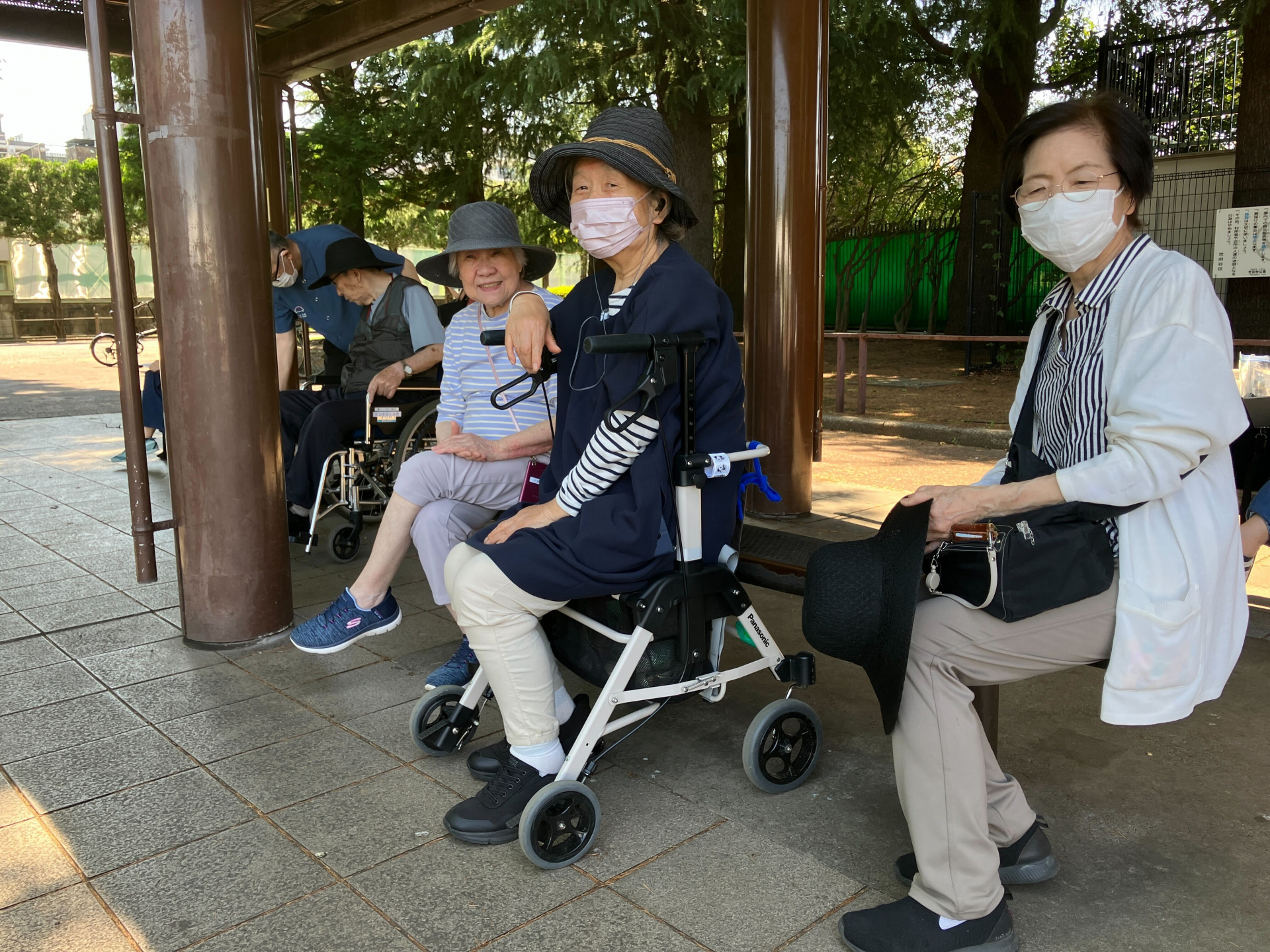 公園では日陰で一休み。外はやっぱり気持ちがいいですね。