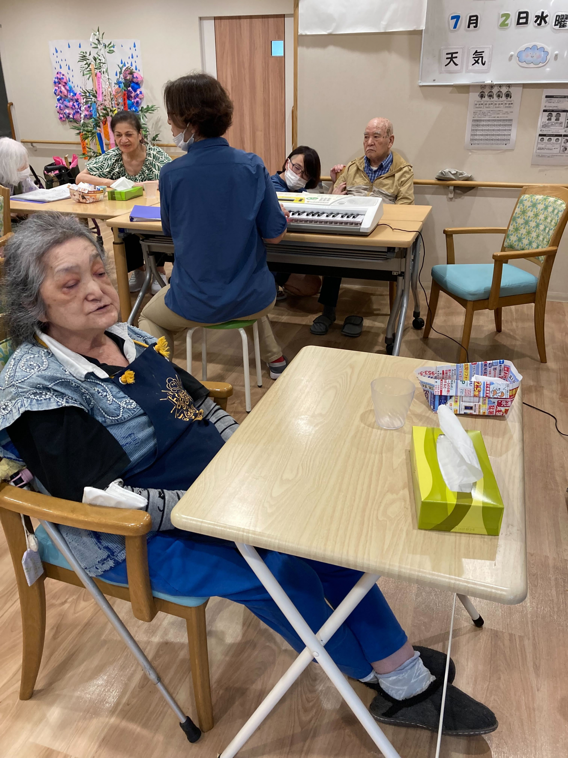 こちらは職員の伴奏で、唱歌や童謡をみんなで歌っています。