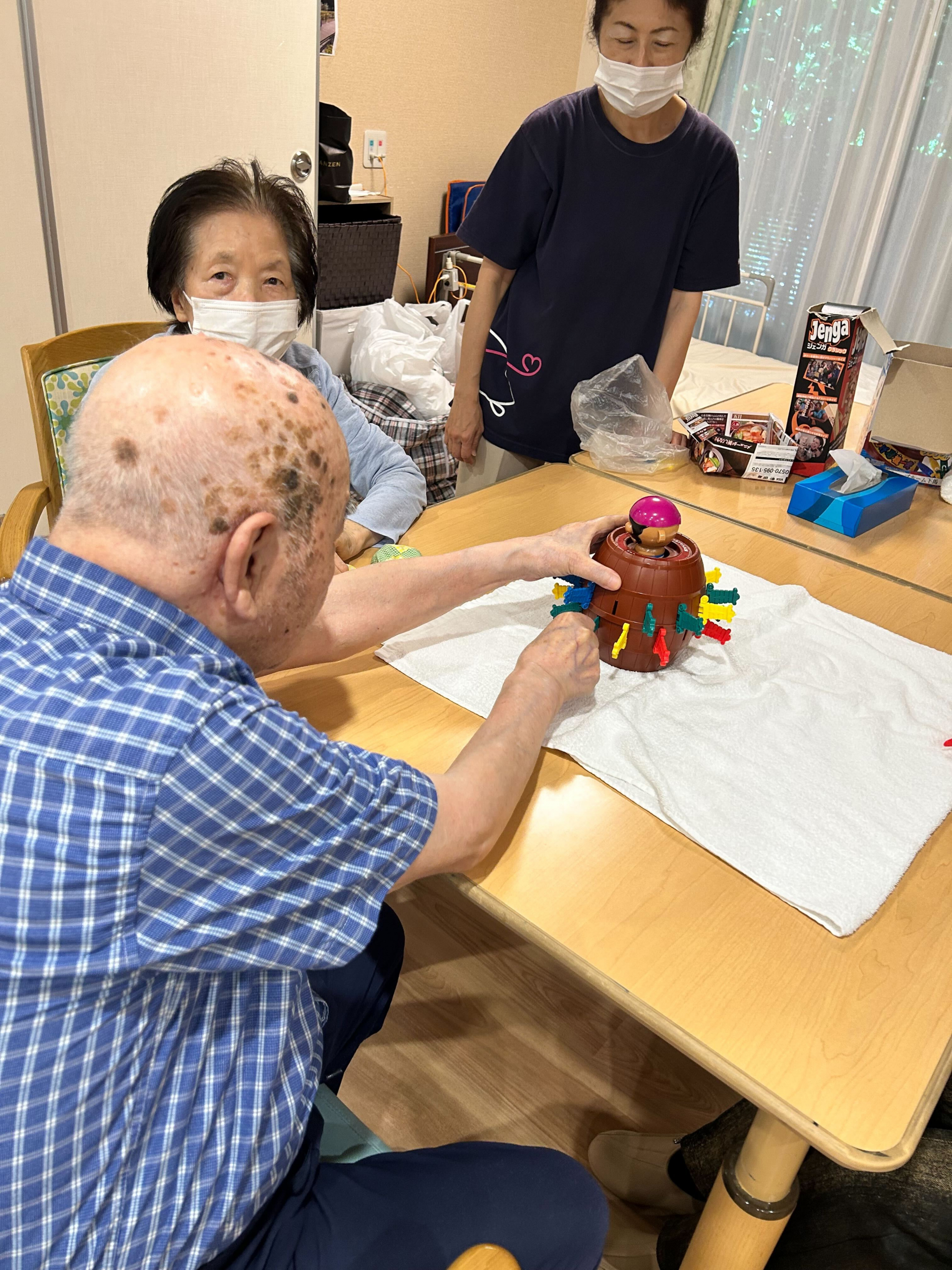 こちらは、黒ひげ危機一髪を皆で楽しんでいます。分かりやすくて、いい遊びですよね。