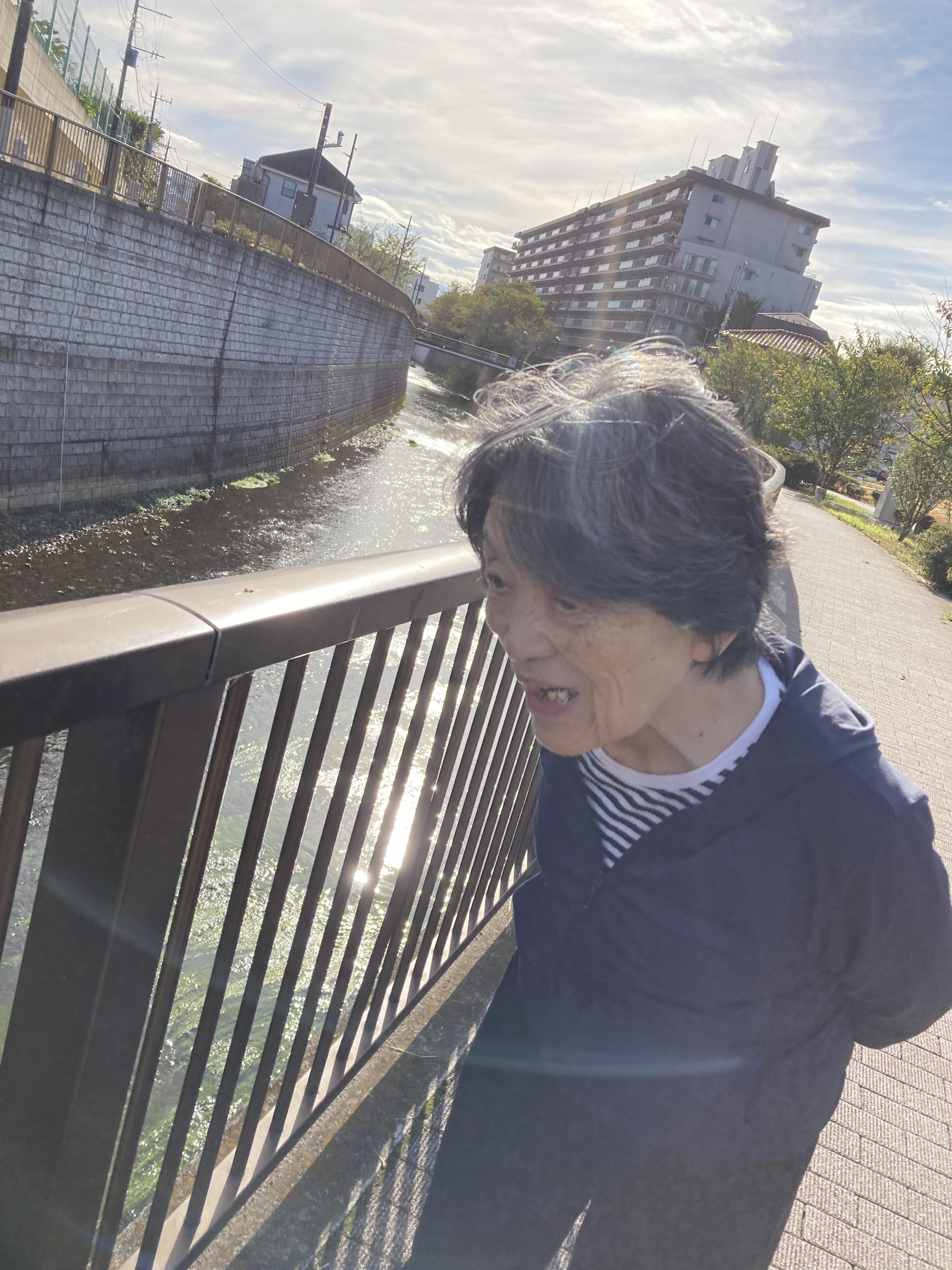 とてもいい笑顔で川沿いを鑑賞されておりました。