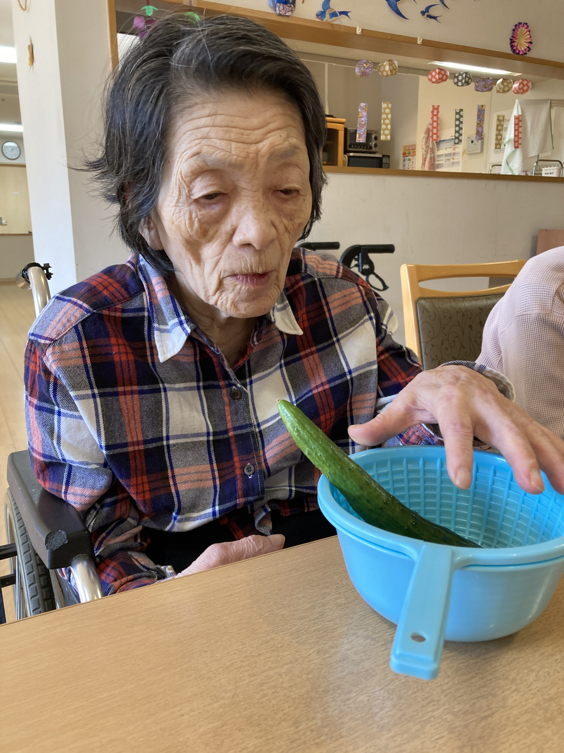 施設で育てていたきゅうりが育っていましたので、皆様で召し上がって頂きました!