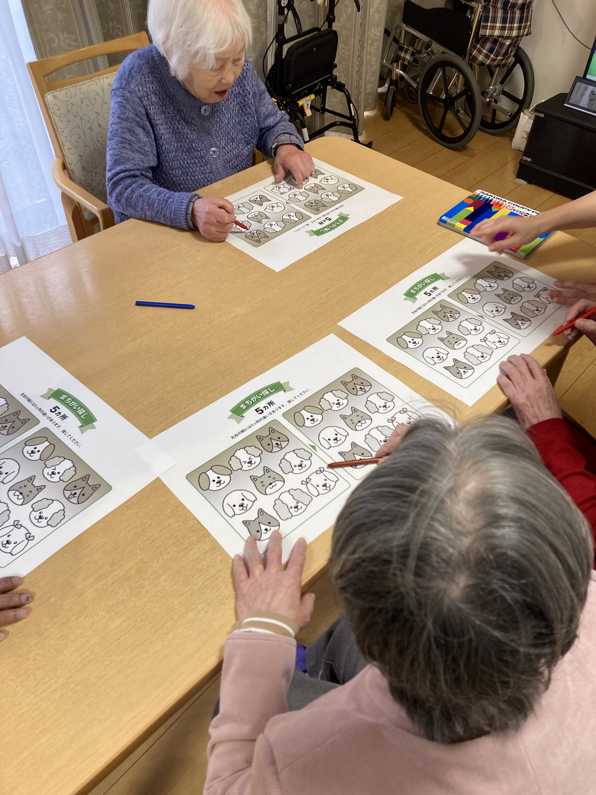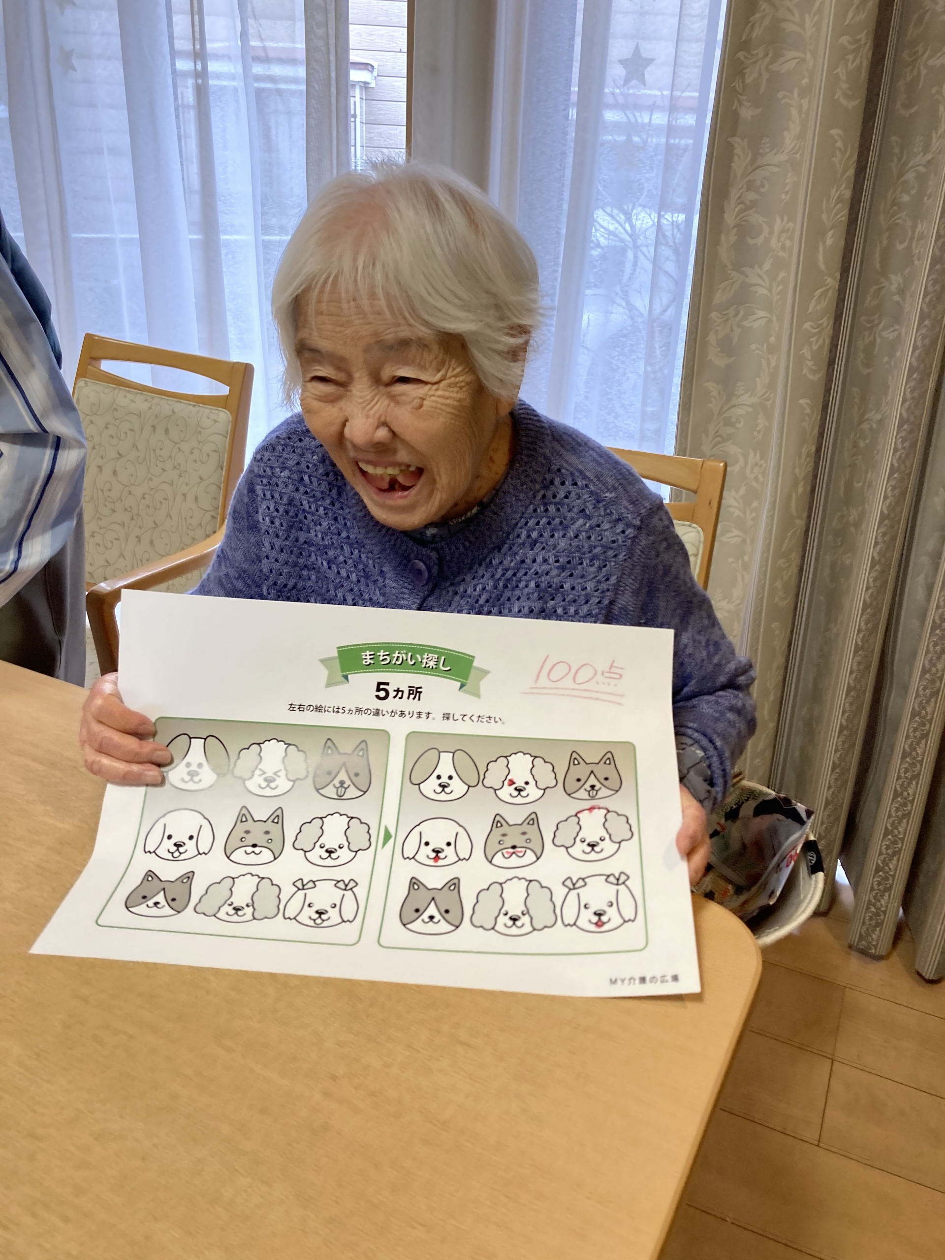 本日は作業療法士とともに、脳の体操として「間違い探し」に取り組みました。