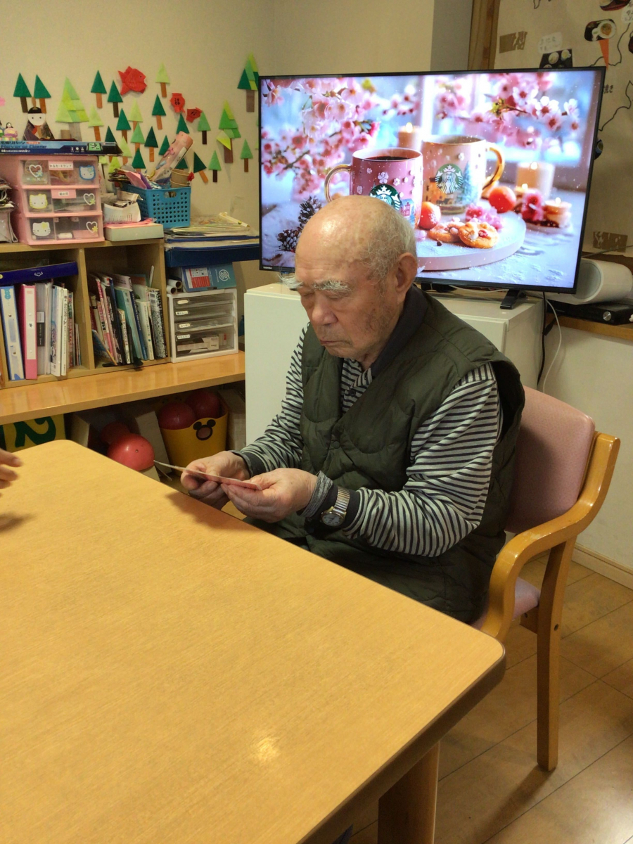 2026.04.08 小規模多機能 真剣勝負! Tweet シェアする 食後の休憩と頭の体操を兼ねてトランプをしました! 頭を使うとお腹が減りますよね( ´艸`) 真剣勝負の後はお茶の時間で 一息つきましょう♪ 優っくり小規模多機能介護石神井台沼辺 金子 #トランプ #優っくり小規模多機能介護石神井台沼辺 前の記事 2026.04.09 小規模多機能 爽やかな朝の顔 次の記事 2026.04.07 小規模多機能 さくら便りpart4 一覧へ戻る