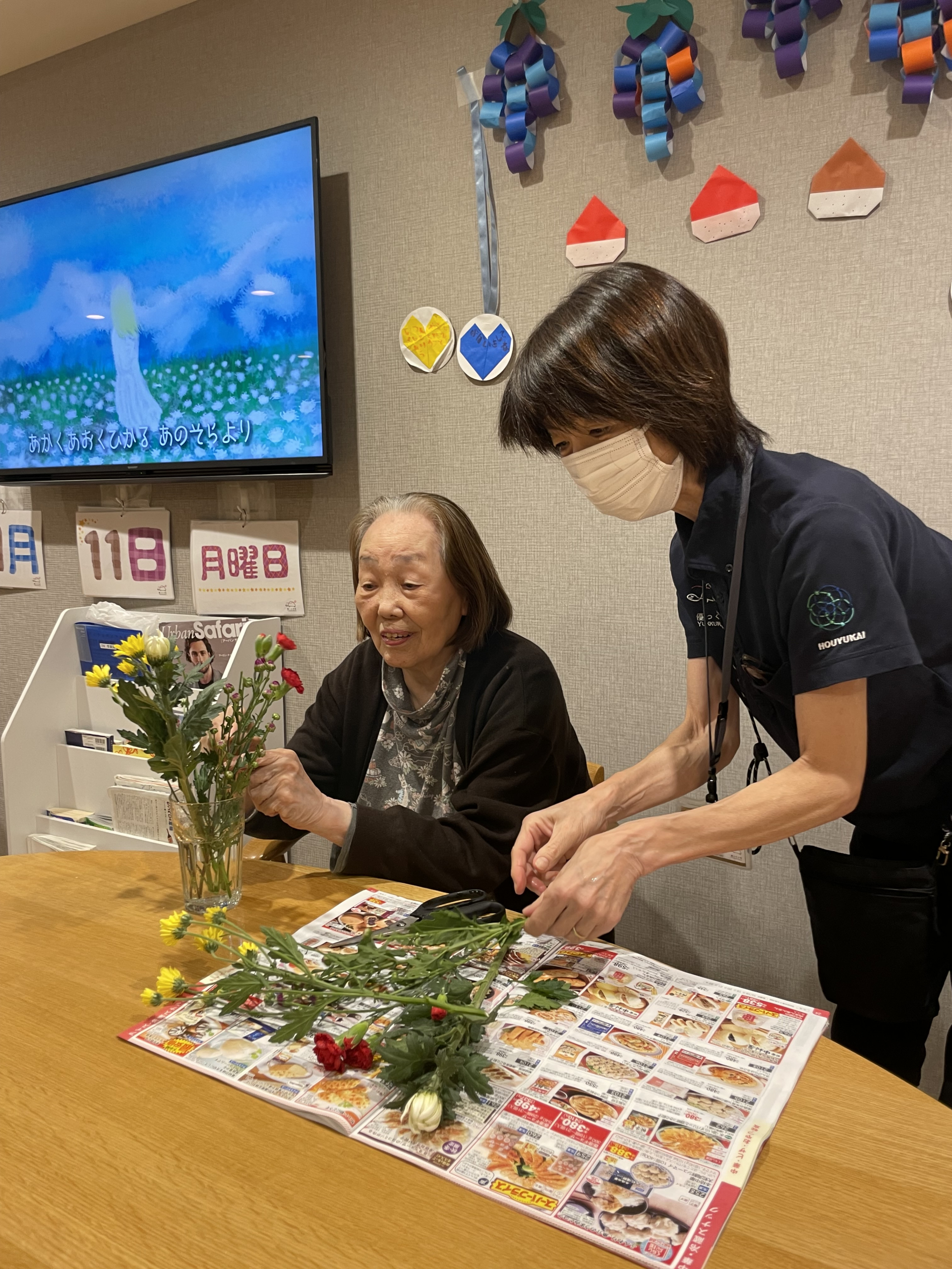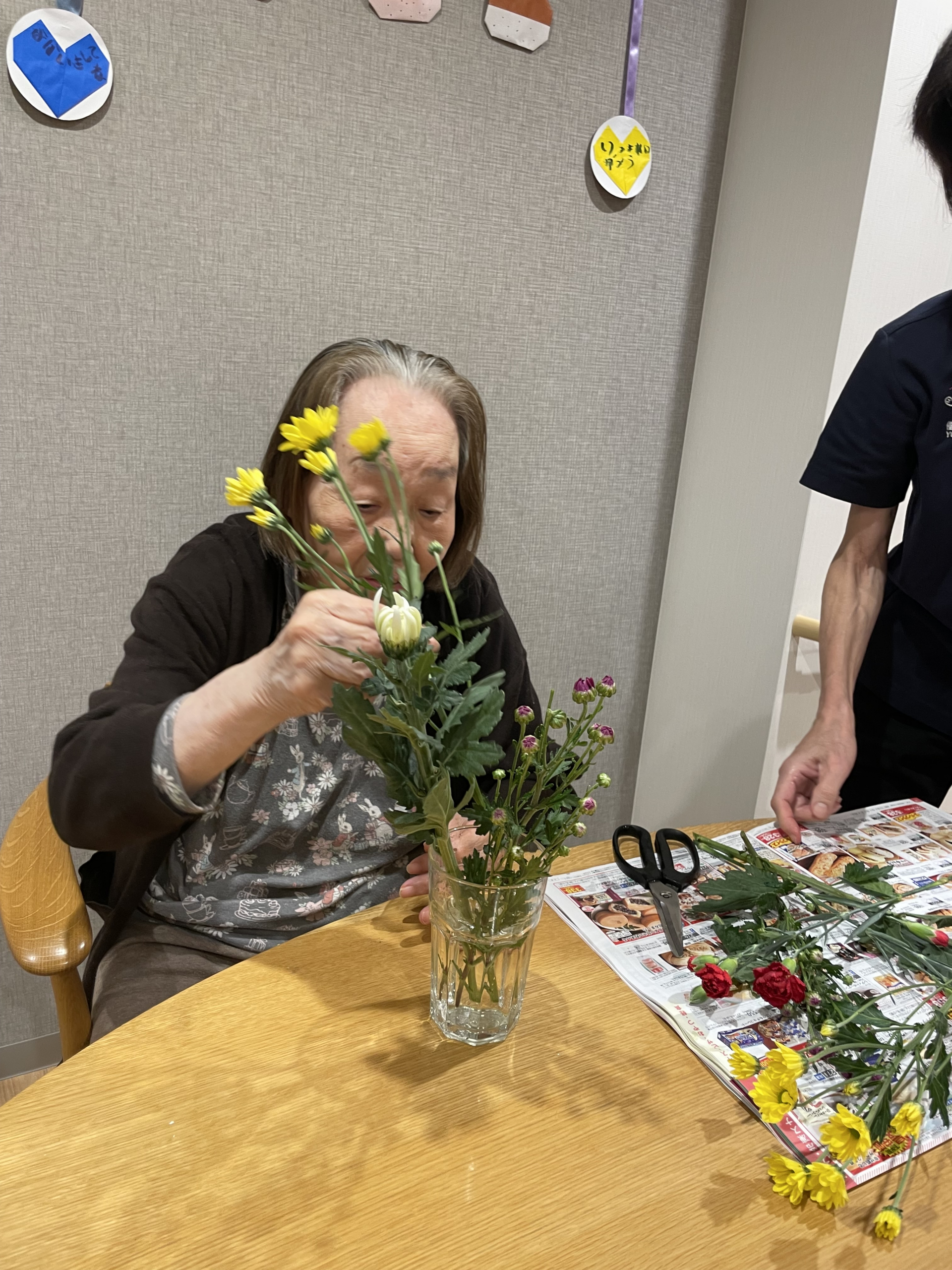 本日お花を頂き、早速3Wの生け花の先生にお花をアレンジして頂きました。