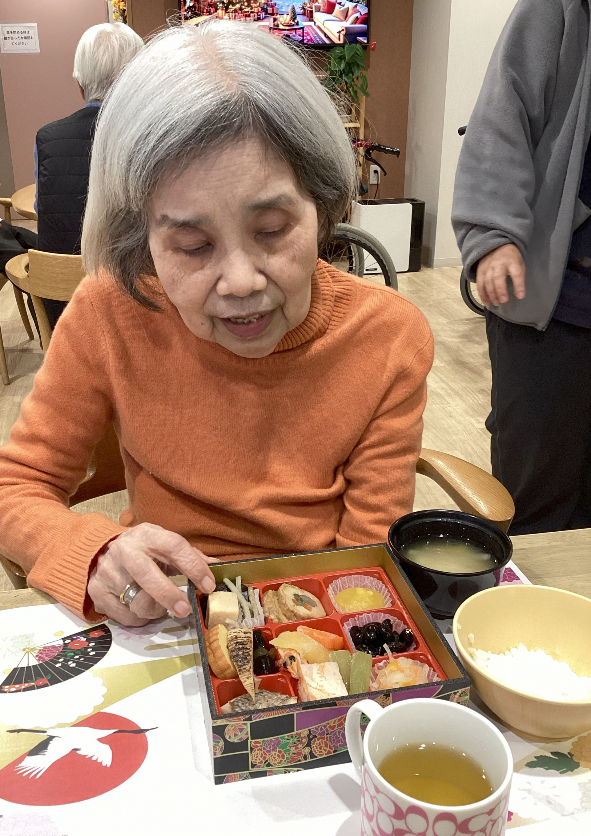 2026.01.01 活動報告 正月料理 Tweet シェアする 1月1日正月、おせちを提供させていただきました。皆様とても喜んでいる様子です。(^_-)-☆優っくり村グループホーム高輪台 金 前の記事 2026.01.05 活動報告 ★2E★ 理美容 次の記事 2026.01.01 活動報告 正月誕生日会 一覧へ戻る