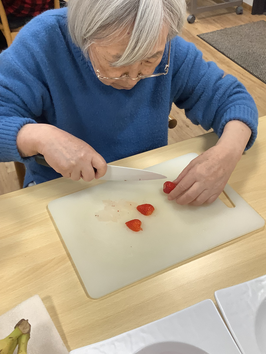S様にはイチゴのヘタ取りとバナナのカットをお願いしました(^_-)-☆