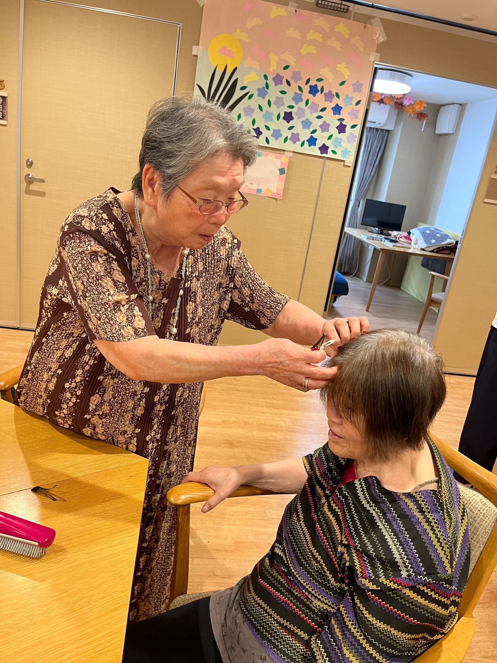 各自承諾を頂きながら、他のご利用者さまのヘアーセットをして頂きました。