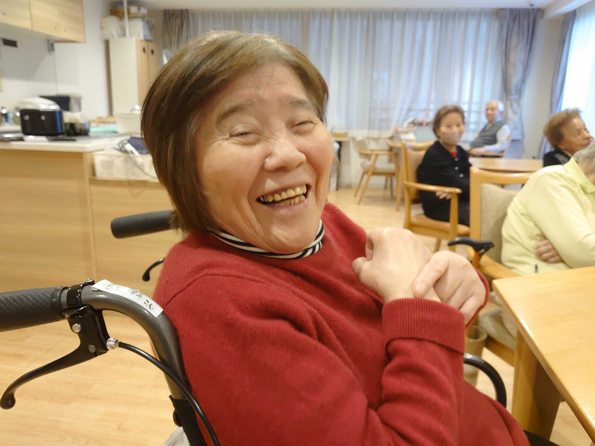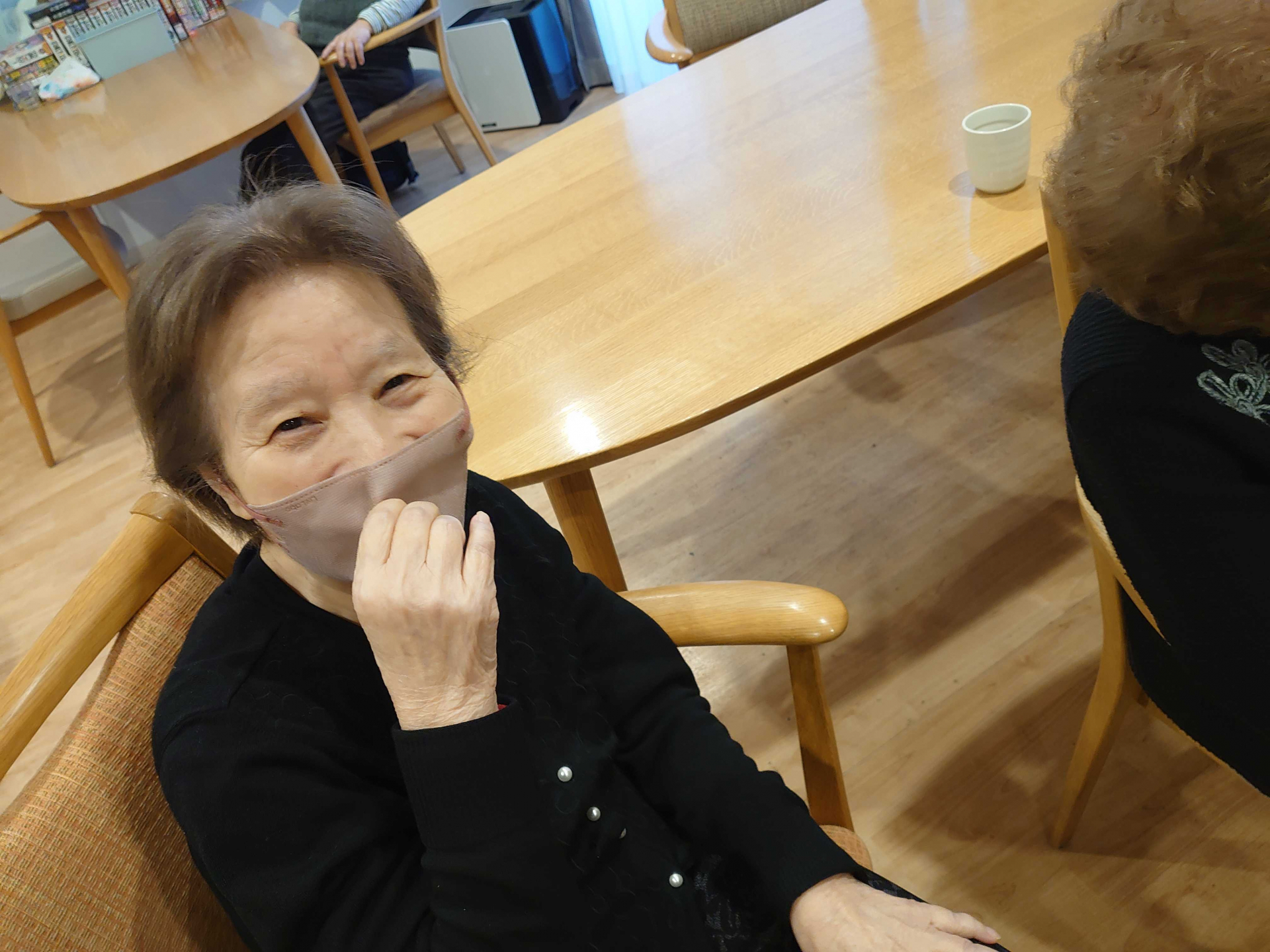 そこでまだ鬼になった私の存在に気が付いていない利用者様の隣に座ってみました。