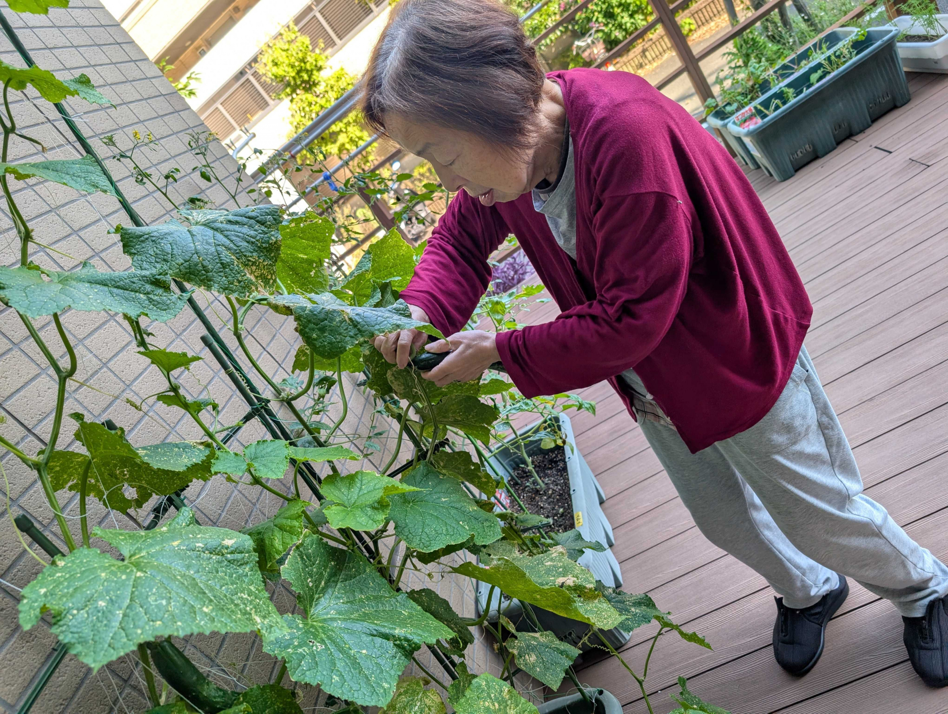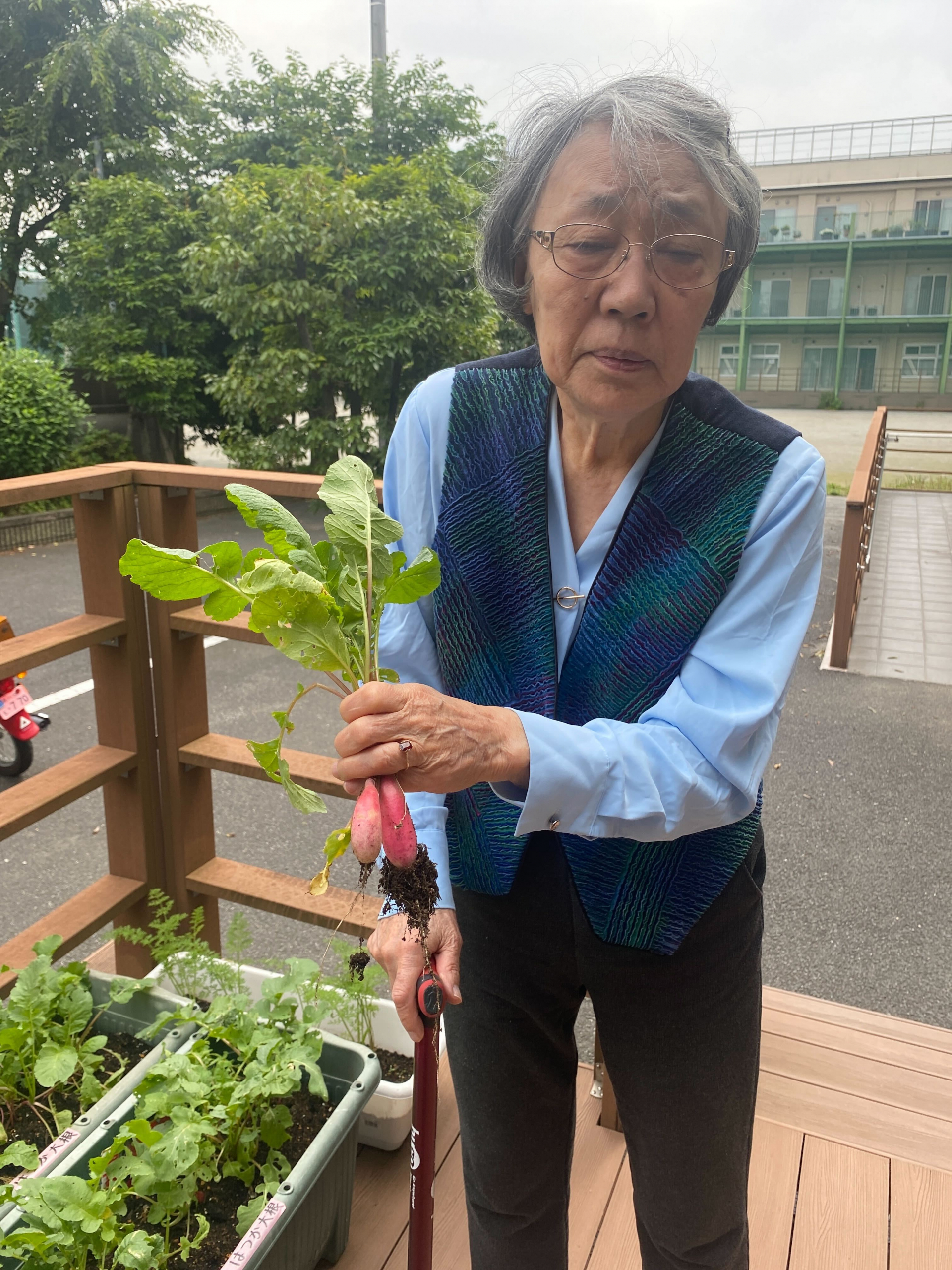 今日は、かねてより杜松グループホームで育てていた野菜たちが立派な姿に