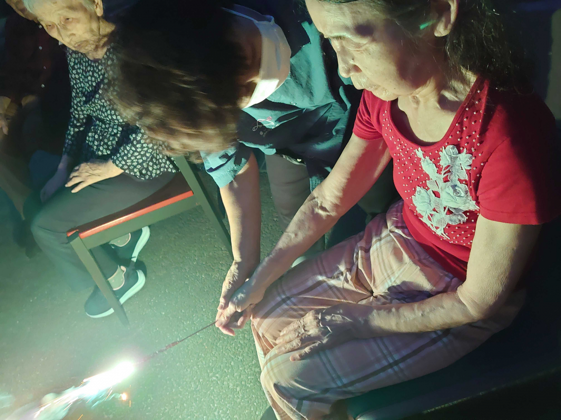 花火に慣れてきてノリノリで花火を上下に動かして動きを楽しんでいる
