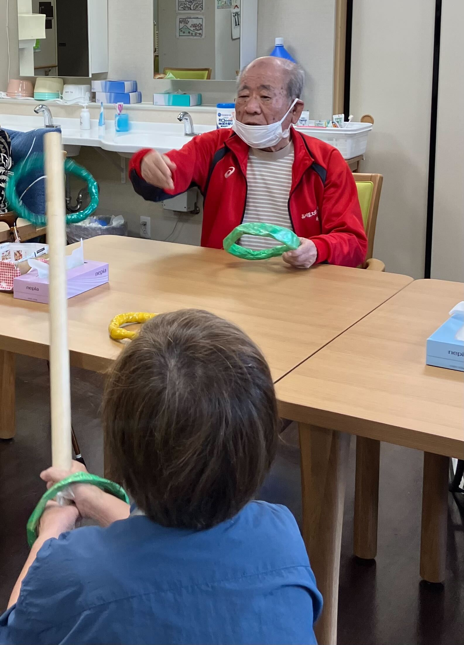 昼食後のレクリエーションの時間に、輪投げゲームを行いました!