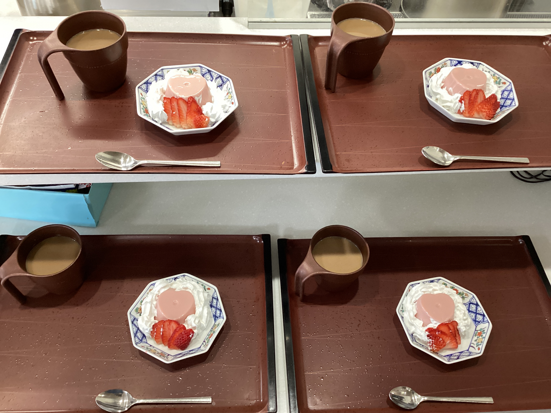 美味しそうないちごプリンアラモードの完成です。