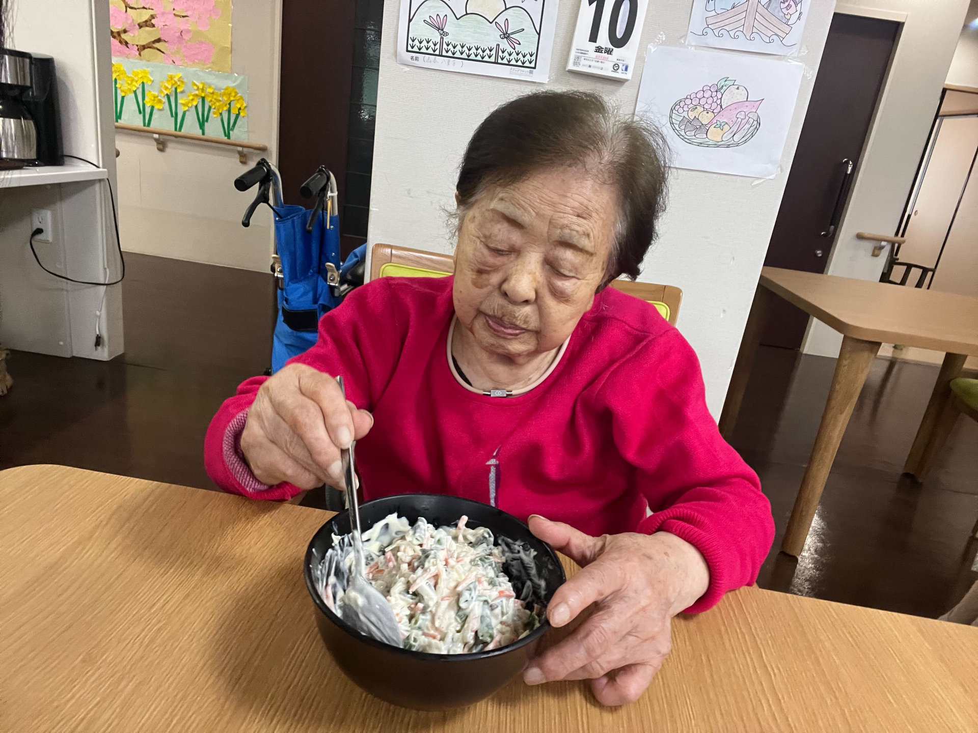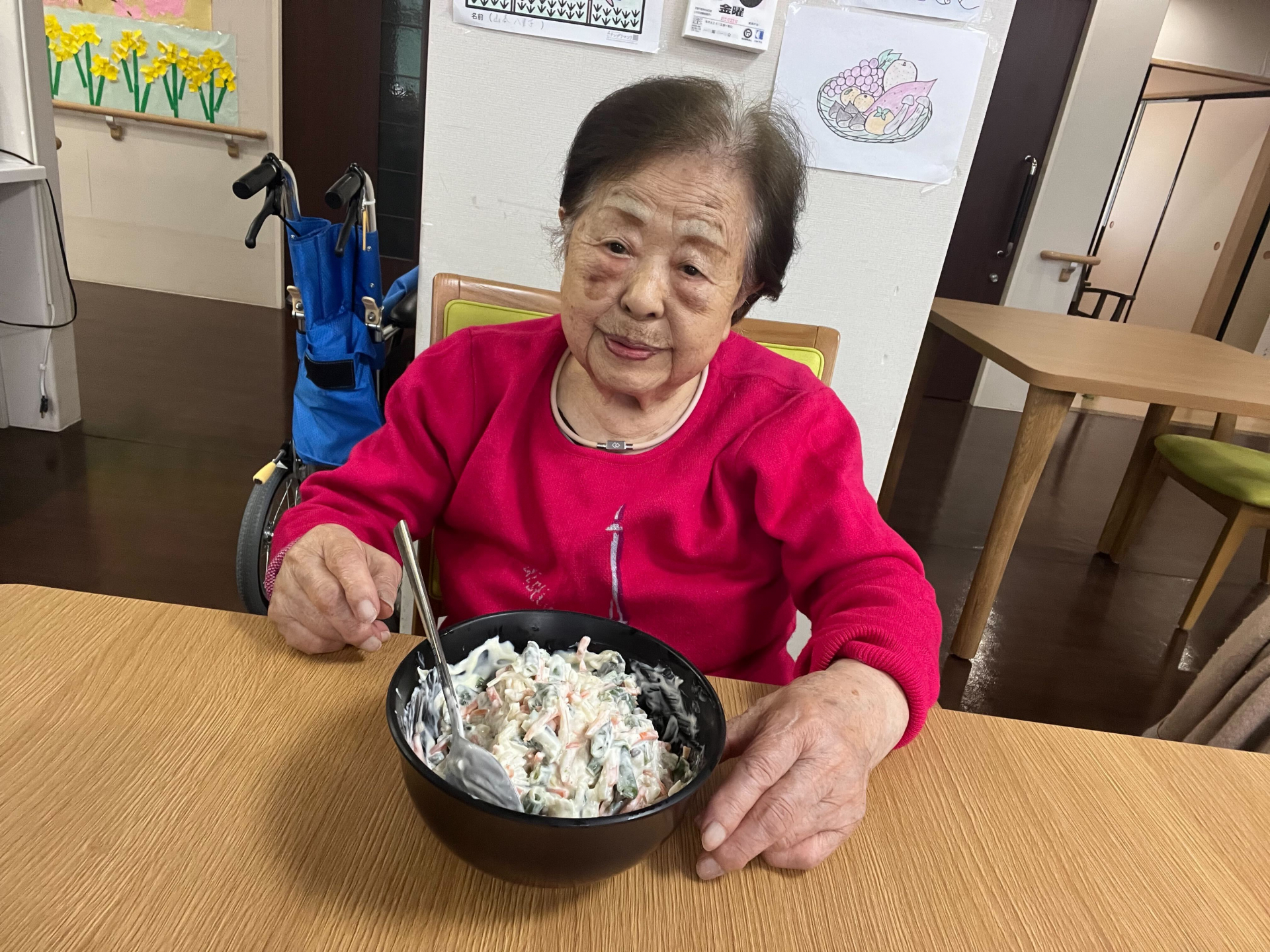 2026.04.10 活動報告 昼食お手伝い🍚 Tweet シェアする お昼ご飯の「マヨサラダ」を混ぜて頂きました(^^♪ 流石主婦ですね✨上手に混ぜてくださいます! 「やっぱり料理は楽しいね」と昔のお話も聞かせてくださいました♪ 川島 次の記事 2026.04.03 活動報告 手作りお昼ご飯🍛 一覧へ戻る