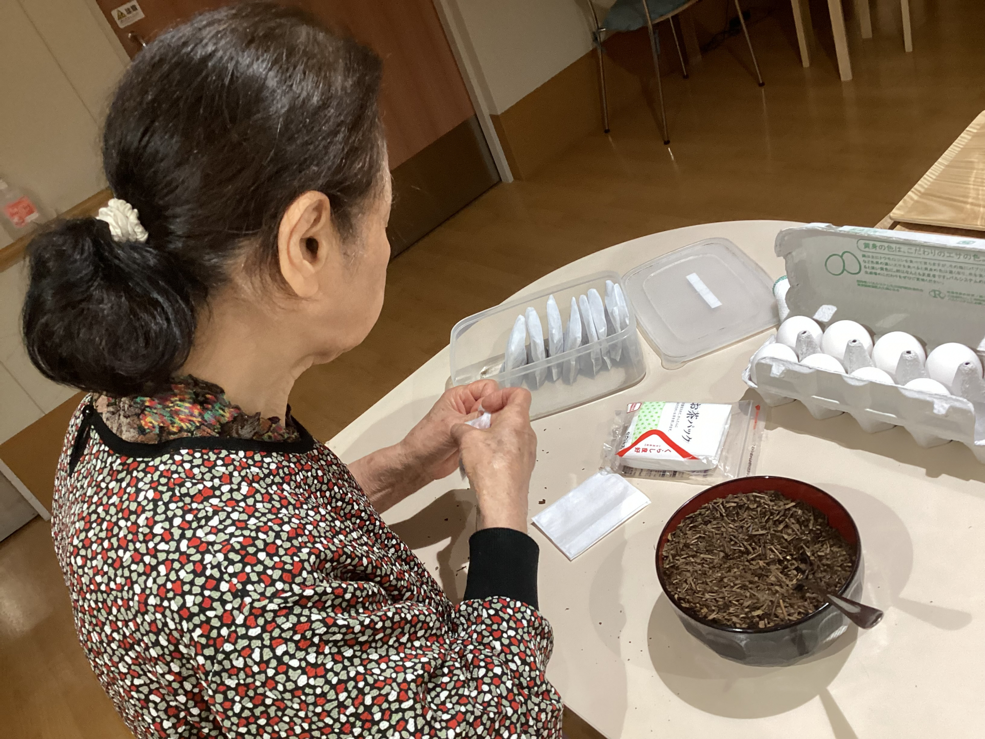作業がお好きな方には、お茶っ葉詰めをして頂いたりもしています。