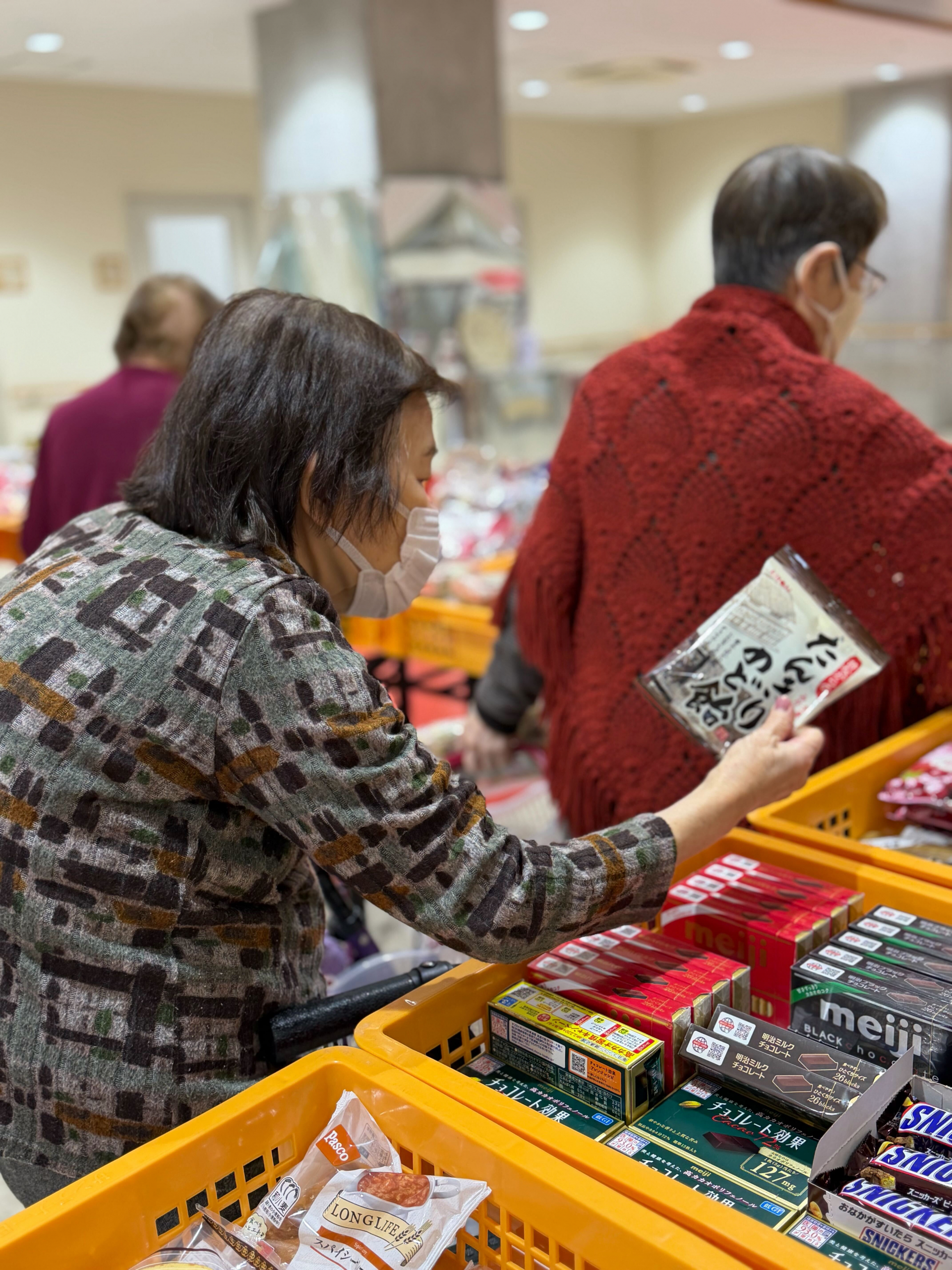 ずらりと並んだお菓子を前に、「どれにしようかな」と笑顔があふれ、和やかなひとときとなりました。