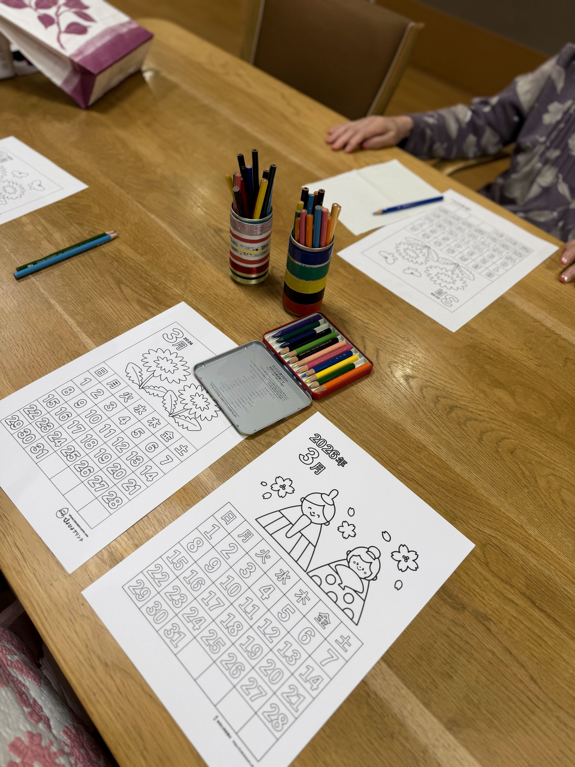 同じイラストでも、それぞれの個性が光り、世界にひとつだけの3月カレンダーが出来上がっていきます。
