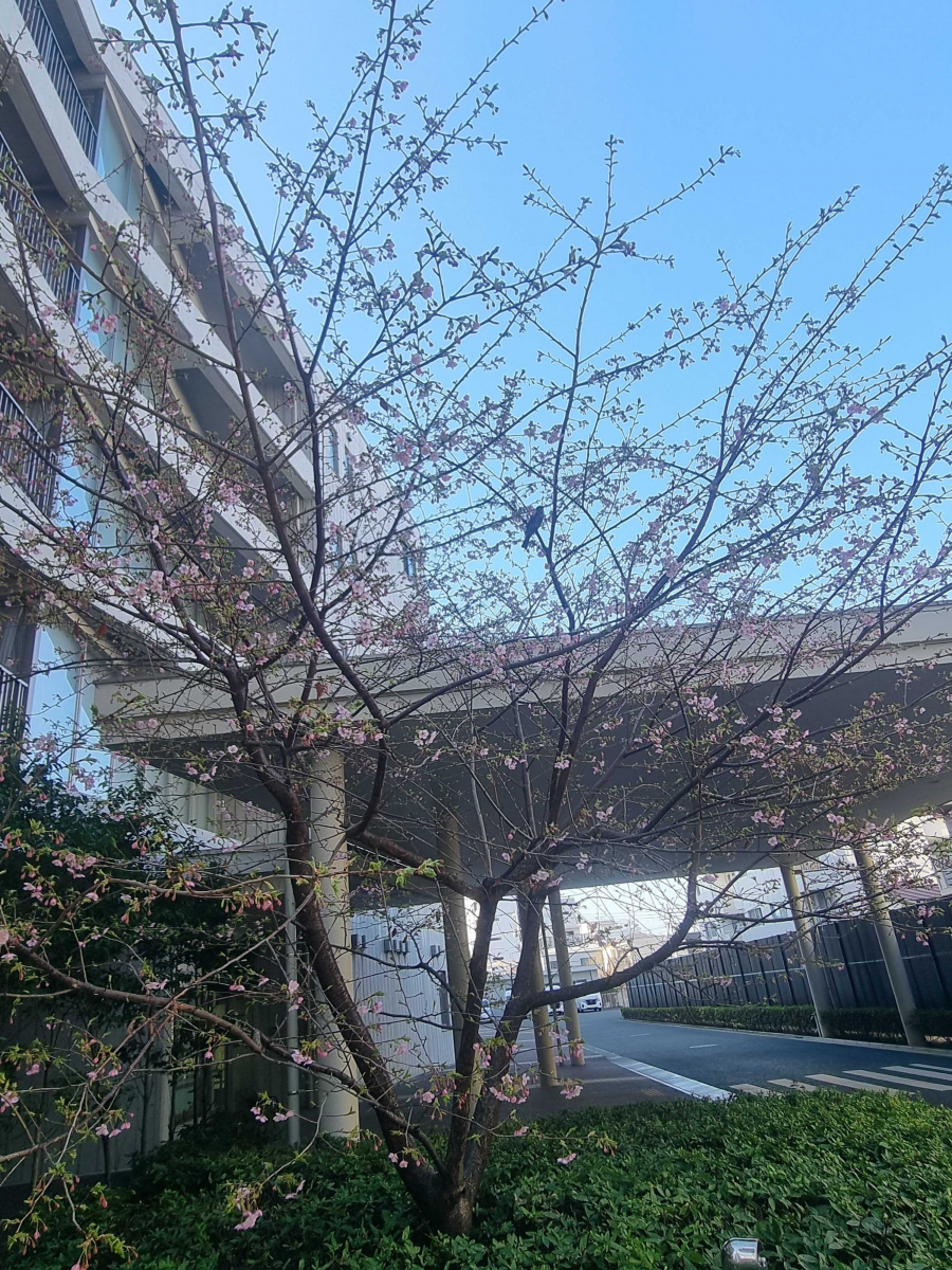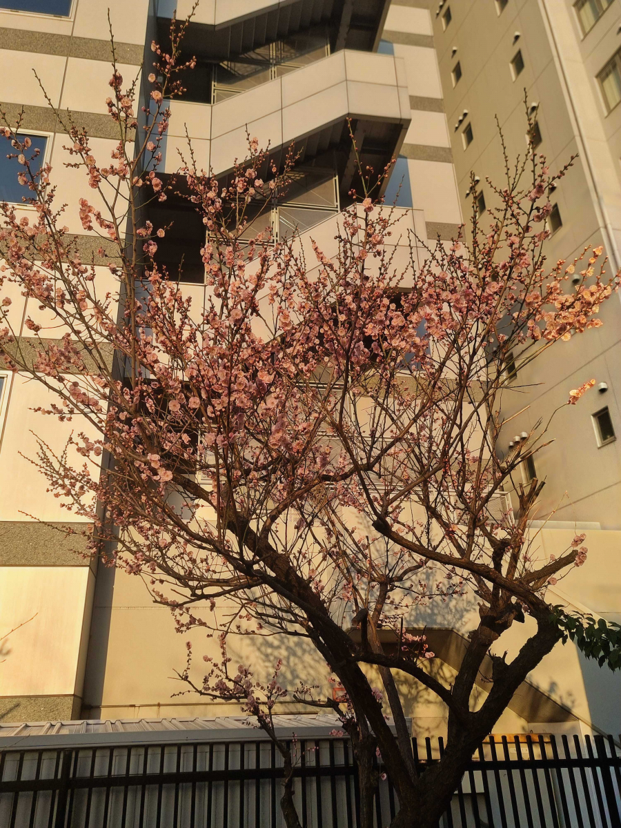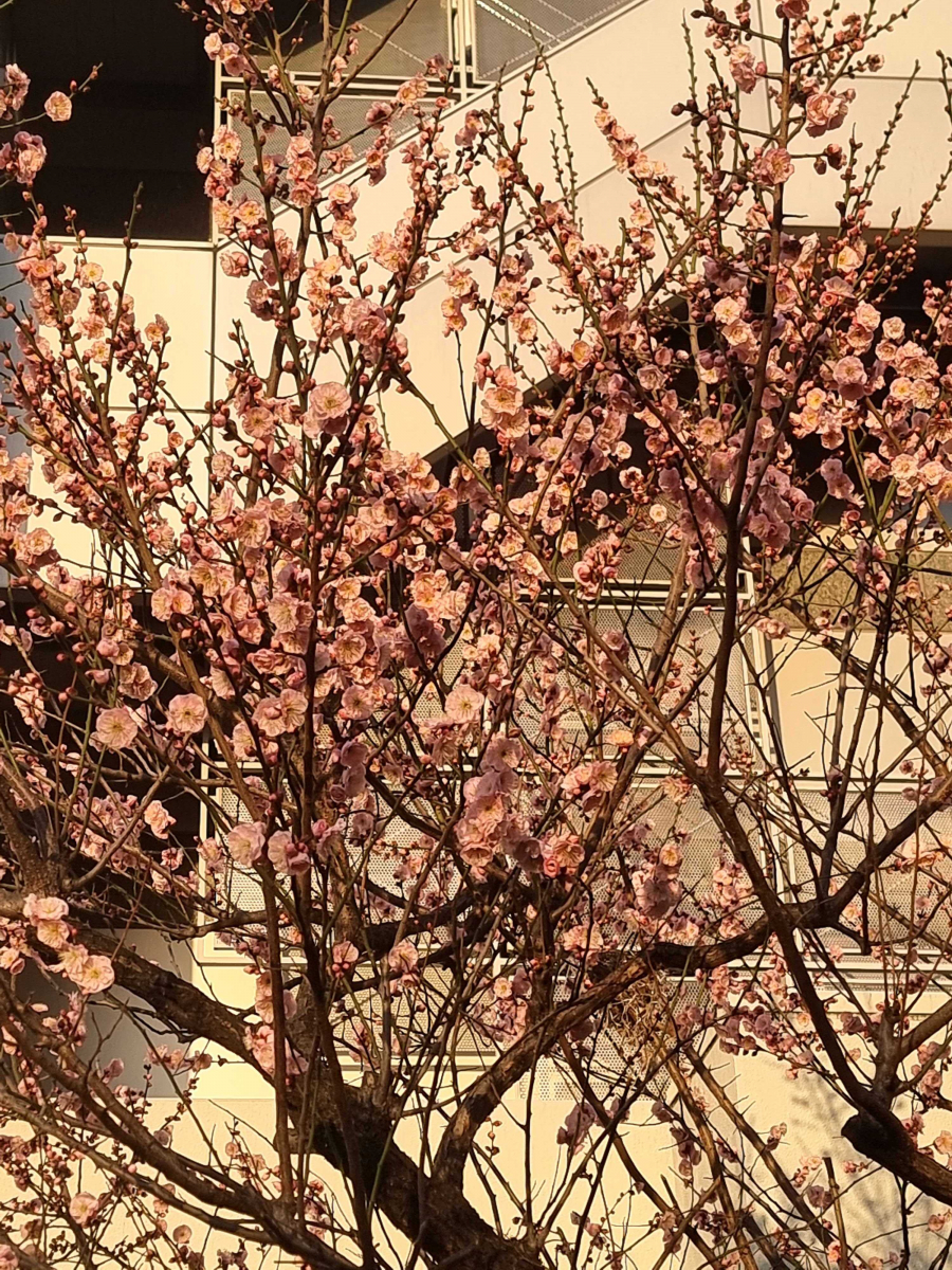 ゴミ置き場の隣には梅の花がきれいに咲いていました。