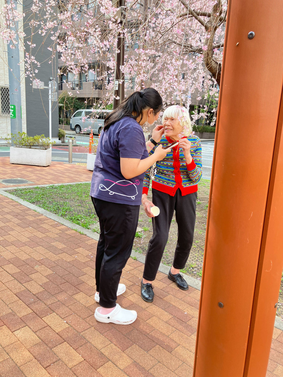 また、会話の中では「昔はよく家で作ったのよ」「お花見といえばね…」と、懐かしい思い出が次々と語られました。こうした回想の時間もまた、ニチショウケアの大切な要素のひとつです。記憶や経験を言葉にし、誰かと共有することで、その方らしさがより自然に表れていきます。