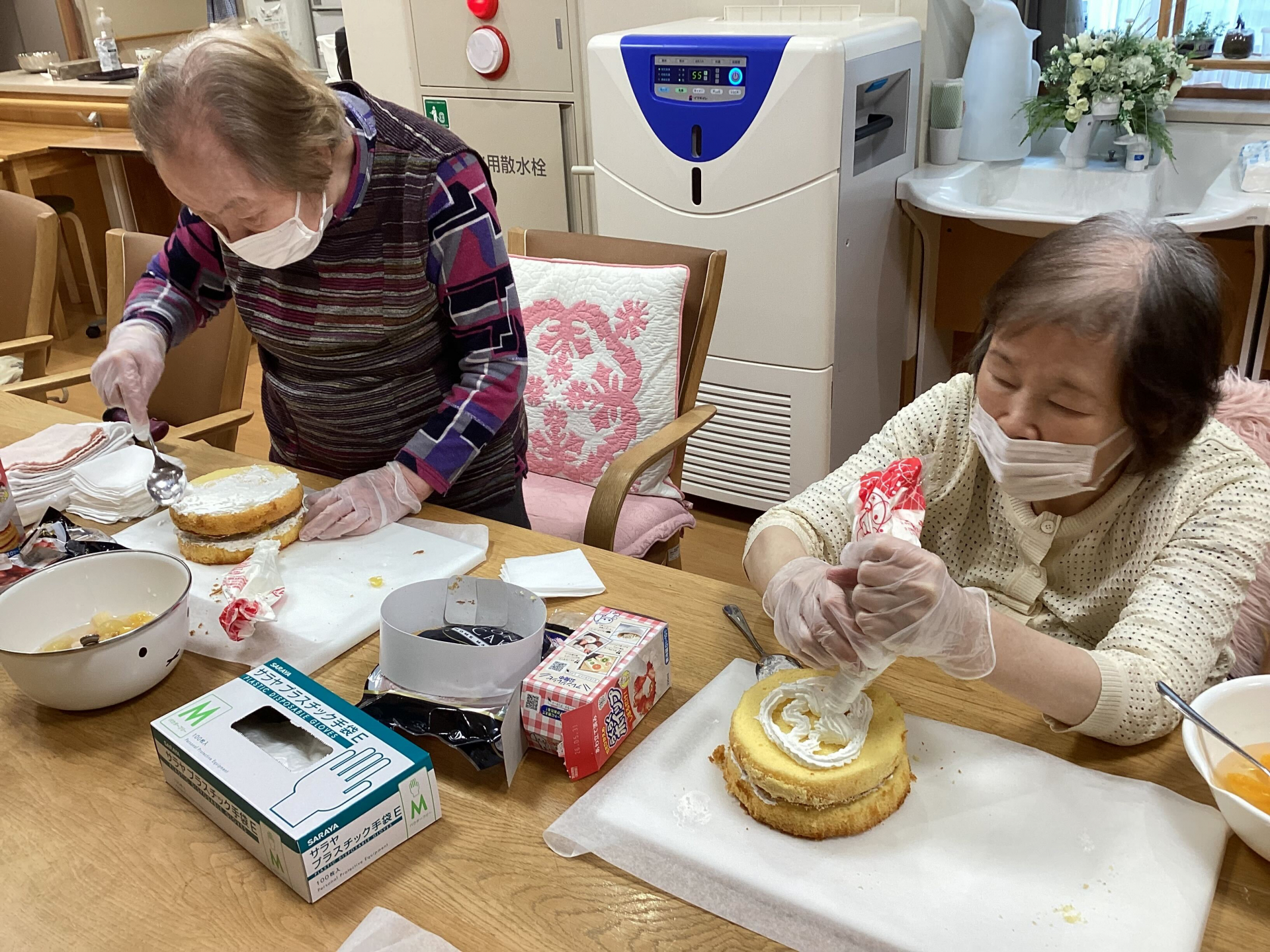 そしておやつの時間には、他のご入居者様と一緒にバースデーケーキ作り