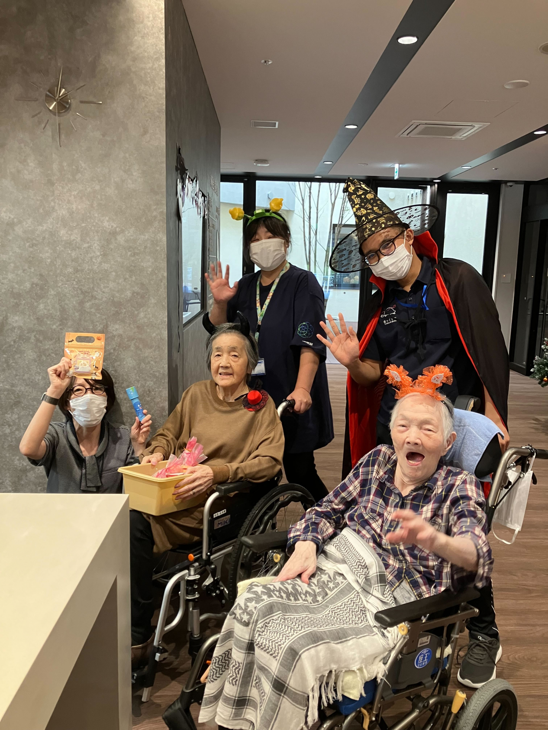 ハロウィンパーティーでおやつを配りにカフェスペースや特養に行きました。^ー^