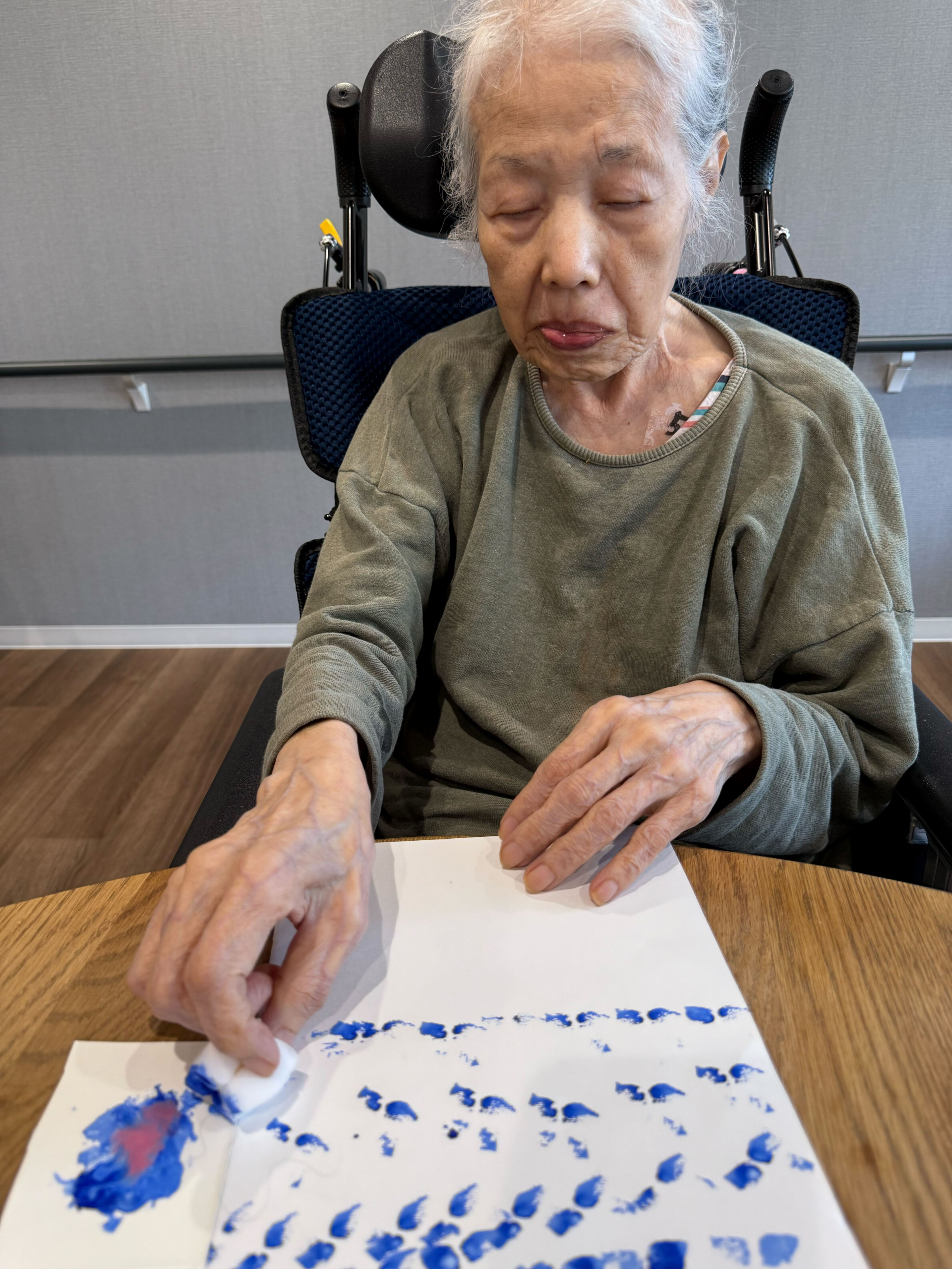 アジサイスタンプ→葉っぱ→てるてる坊主