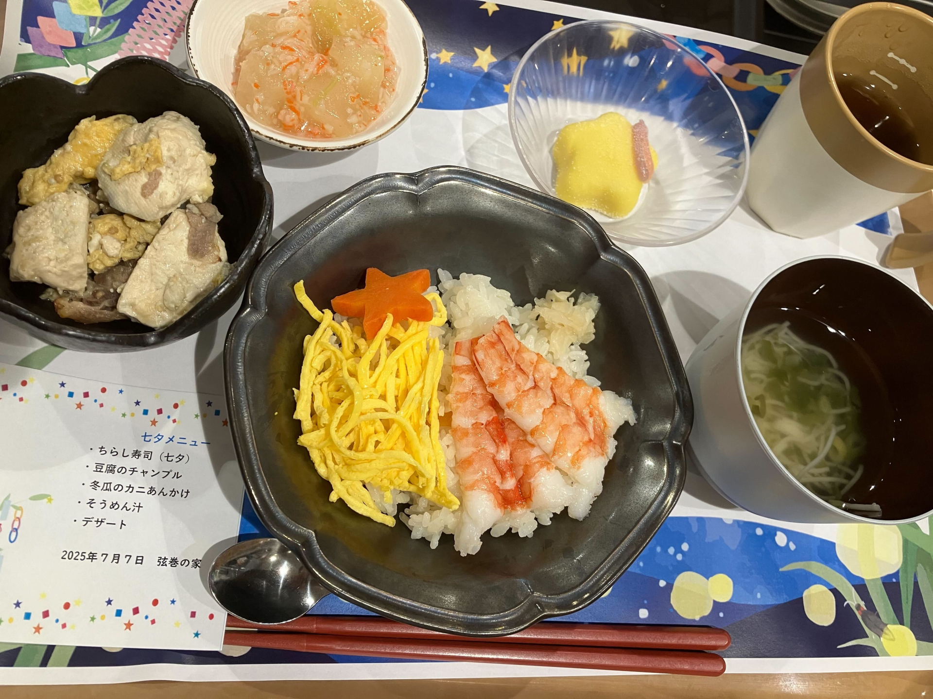 昼食は七夕メニューでした。ちらし寿司とデザートには七夕ゼリーがでました!!