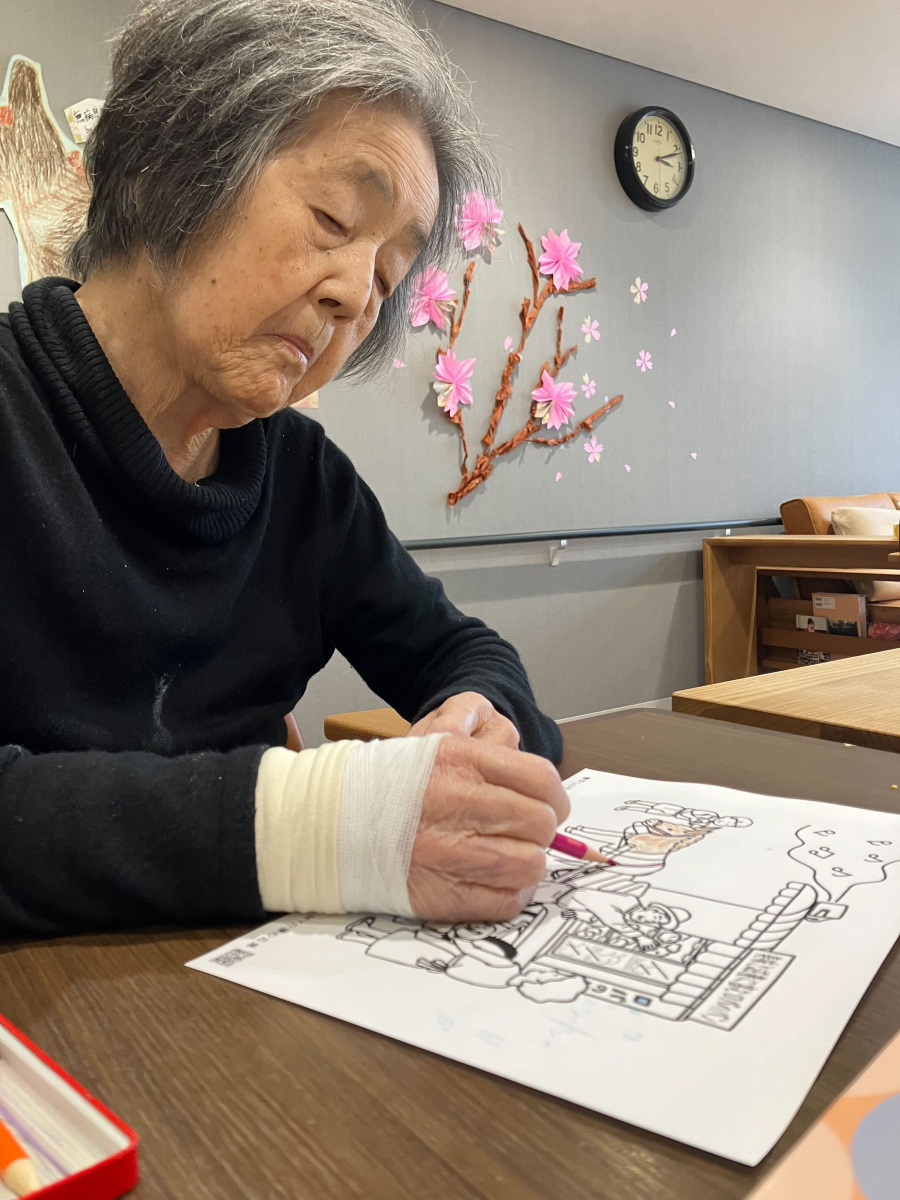 S様珍しく塗り絵をやっていました。ヽ(✿゚▽゚)ノ