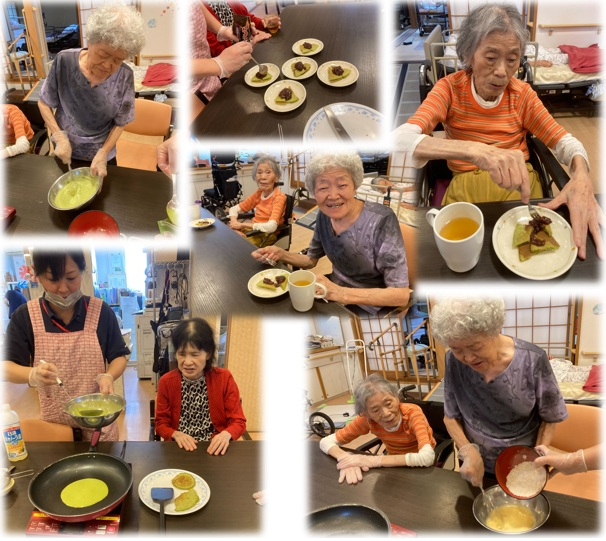 2025.08.13 看多機 一緒にホットケーキ焼きましょ♪ Tweet シェアする こんにちは 優っくり看護小規模多機能介護三軒茶屋です。 今日は一緒に和風ホットケーキを焼きました♪ 抹茶とアンコの組み合わせが素敵でした(^^♪ 材料を買い足してまた一緒に焼きましょー #優っくり看護小規模多機能介護三軒茶屋 前の記事 2025.08.13 看多機 【おやつレク】手作りバナナケーキで甘いひととき♪ 次の記事 2025.08.13 看多機 ちょっと散歩しましょ♪ 一覧へ戻る